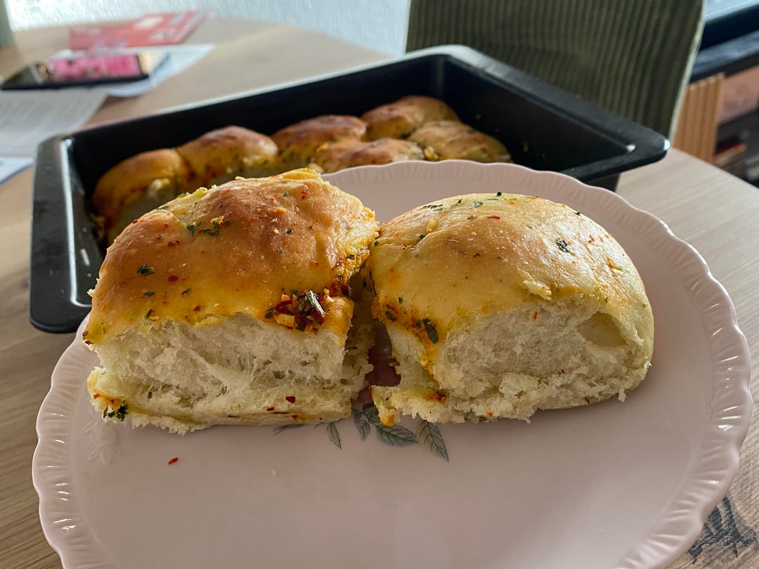 Rolls look fantastic, I’m definitely going to try them. Here’s a similar recipe I really like. Tuscan herb bread: 2.5 tbsp yeast, 1.5 c warmish water, 1 tsp sugar, 3 3/3 c flour 1.5 tsp salt, 1/2 c grated Parmesan, 1 tbsp each(chopped): fresh thyme, rosemary, basil, oregano, 2 tbsp butter. All go into the mixer until dough ball is formed. Let rise 1-2 hours, form into loaf, bake at 375 30-40 minutes until golden brown.