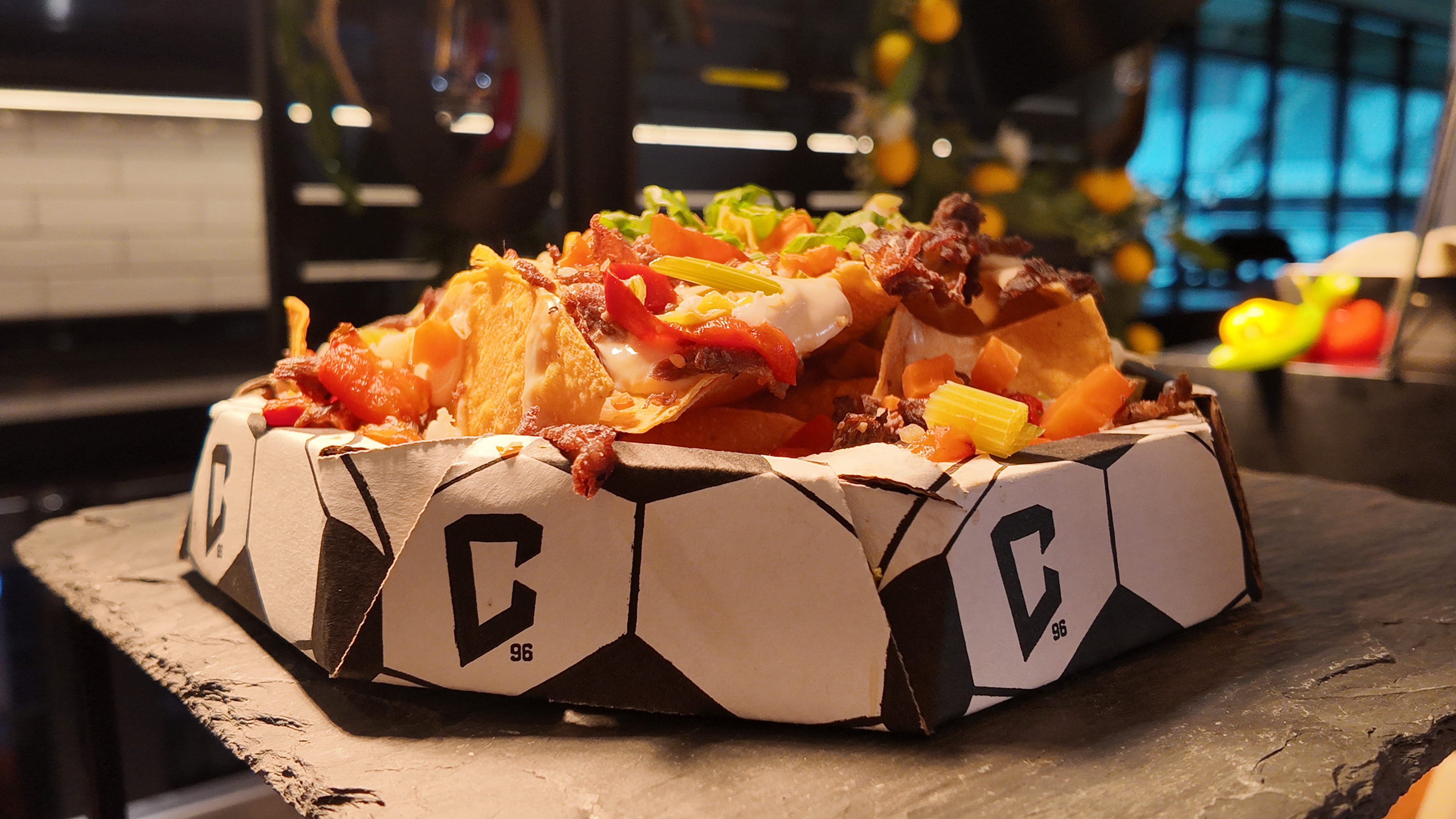 Battle Nachos v1.0: Italian Beef is the debut nacho created as a nod to March 7 opponent, the Chicago Fire. They include some of the components of the city’s famous Italian beef sandwiches, piled onto house-fried chips: shaved beef, roasted sweet peppers, hot and vinegary giardiniera, and Italian cheeses. Add on some white queso, because. Just because.