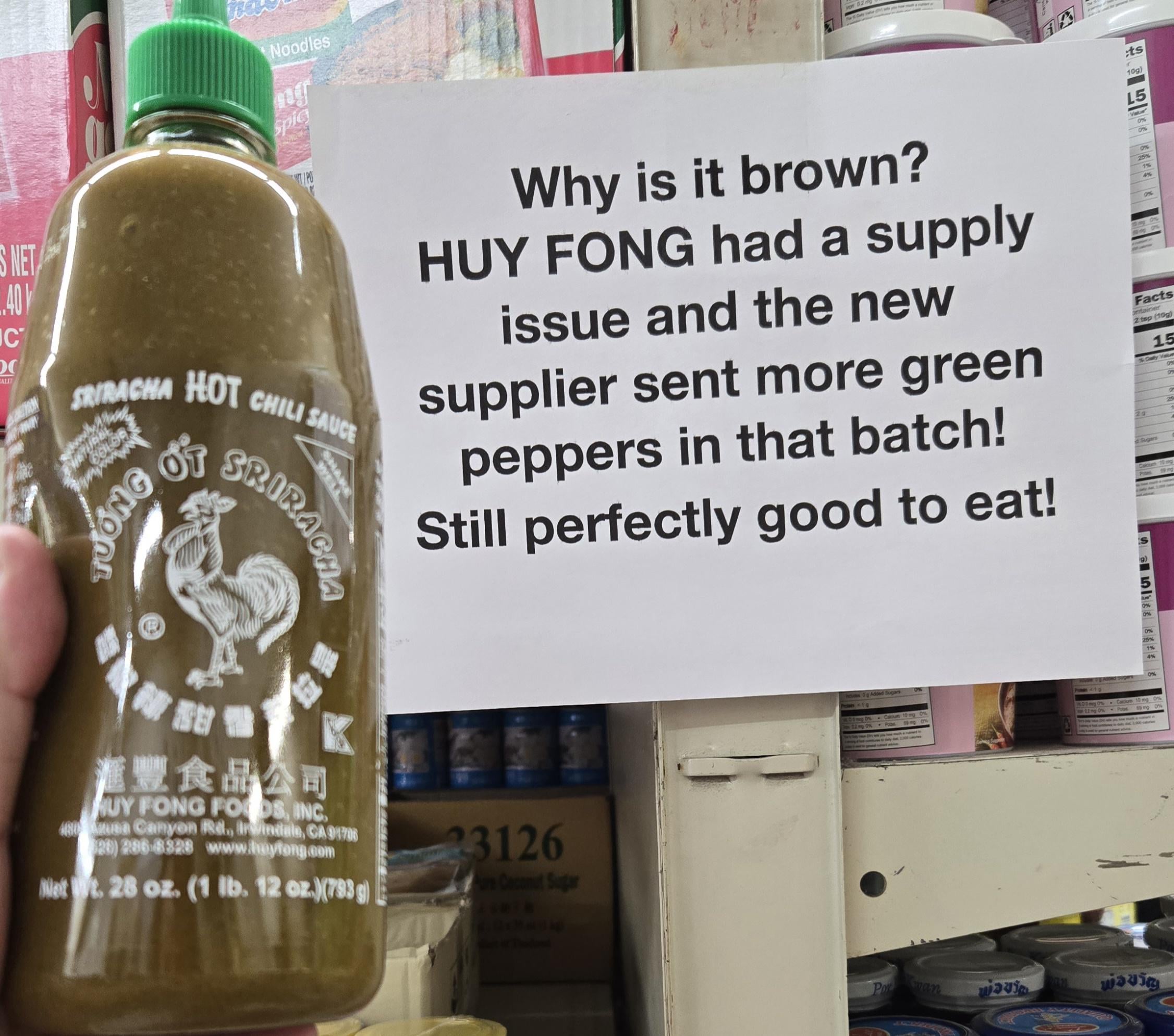 In the past Huy Fong has literally stopped production because of “Too many green peppers”.