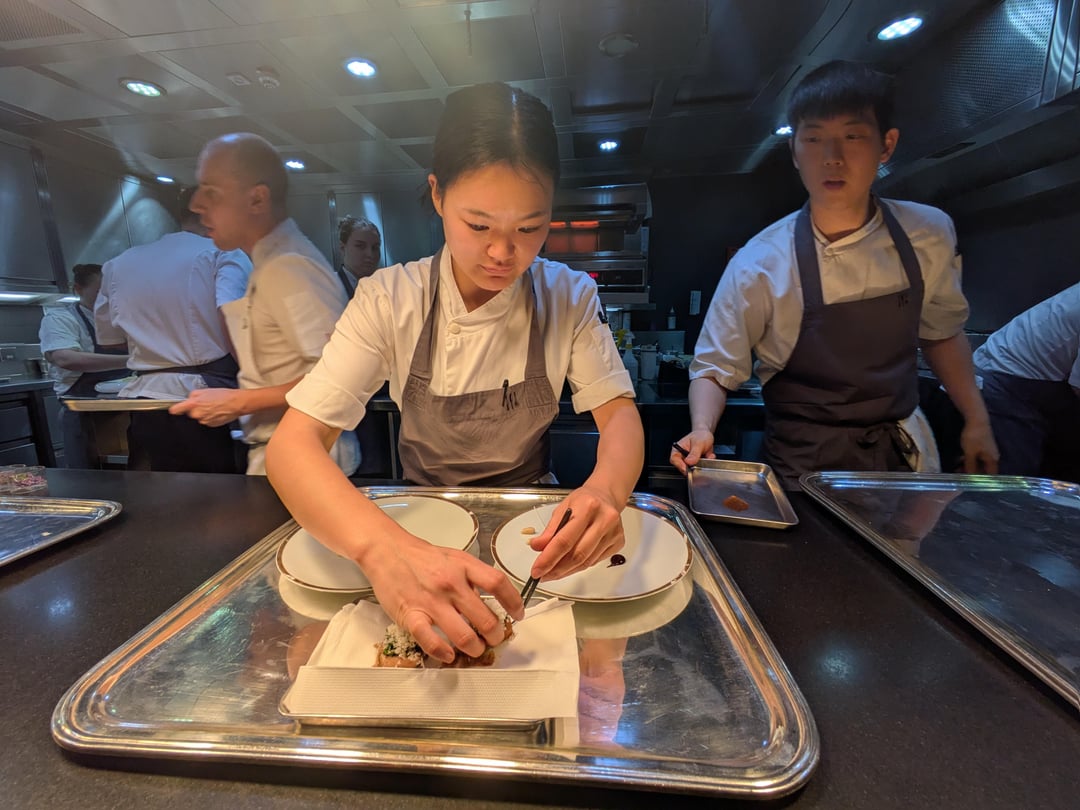 Might be one of my favorite dishes ever. Fucking phenomenal. Topped with chives and shaved almonds served with cherry and almond sauces and an amaretto cherry itself. Perfectly cooked, a great blend of flavors and textures. Was so good we ordered it again. We were already told we would get to see the kitchen before we ordered this but they brought us in to see it plated and have it explained by the chefs which was very unique. I might be biased as I love foie gras and amaretto cherries but it would be on my death row tasting menu.