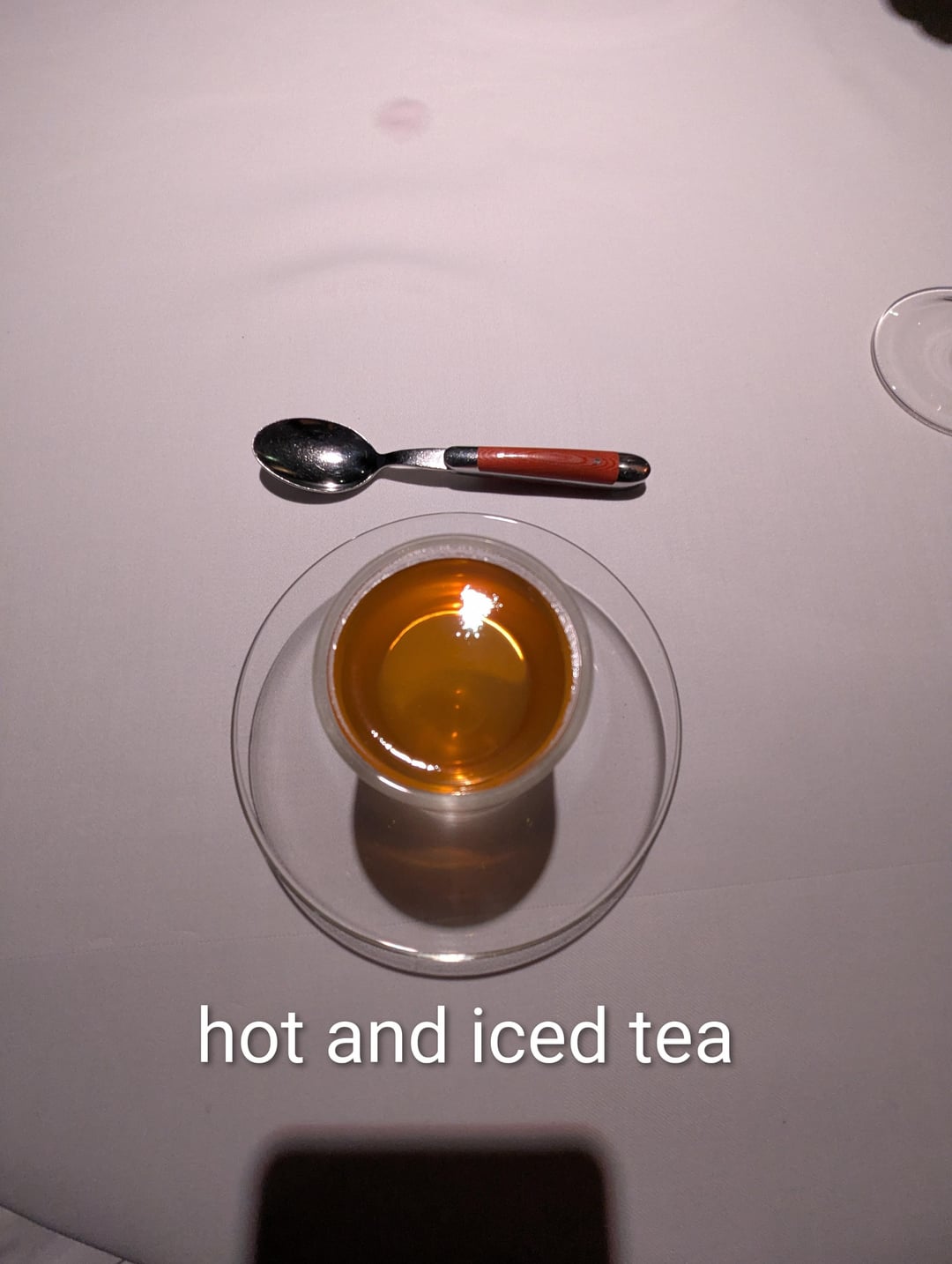 Was an wild combination of foams that tasted of tea. Was very nice transition into dessert. Reminds me of tortilla in a cup from Jose Andres.