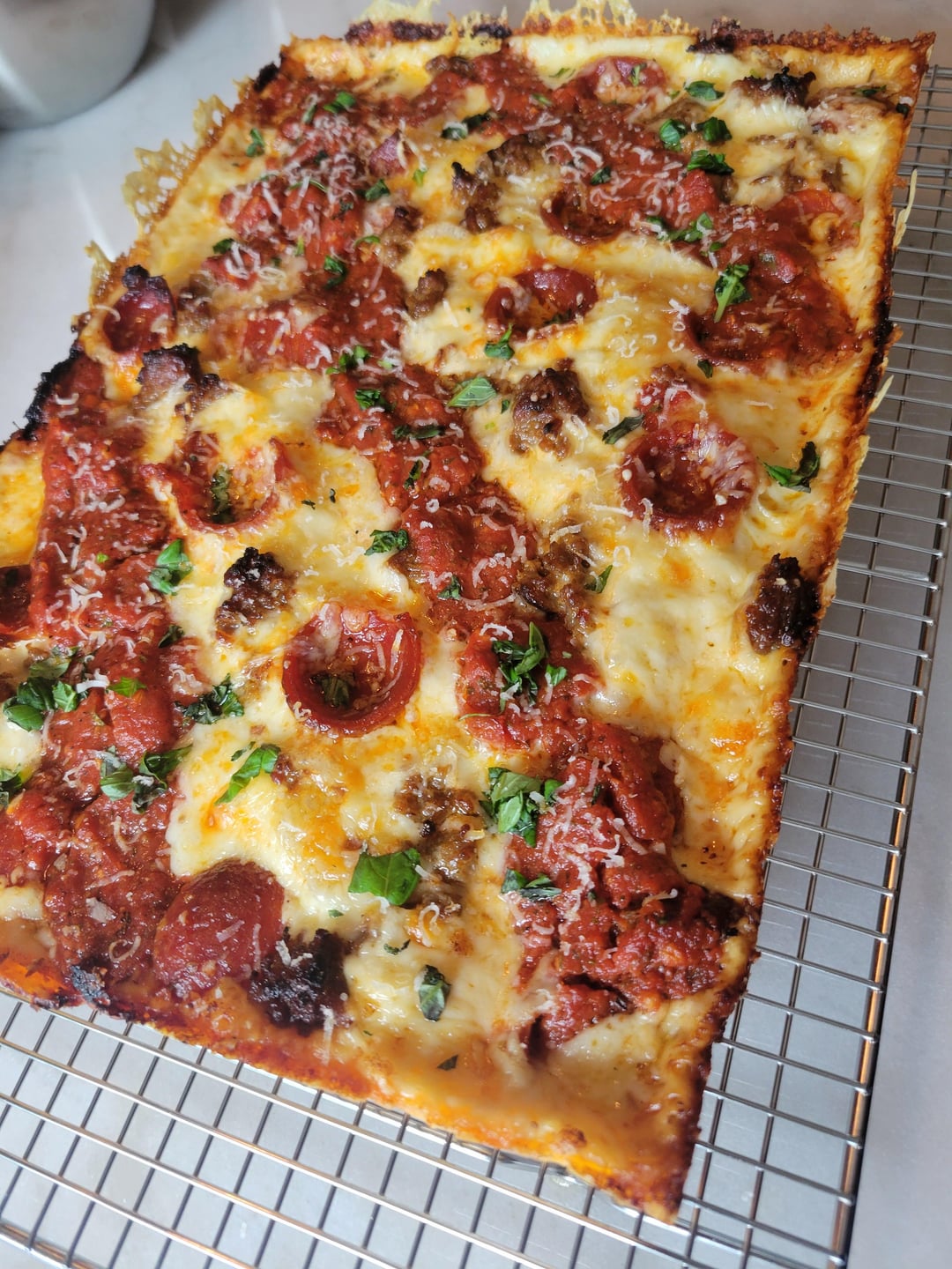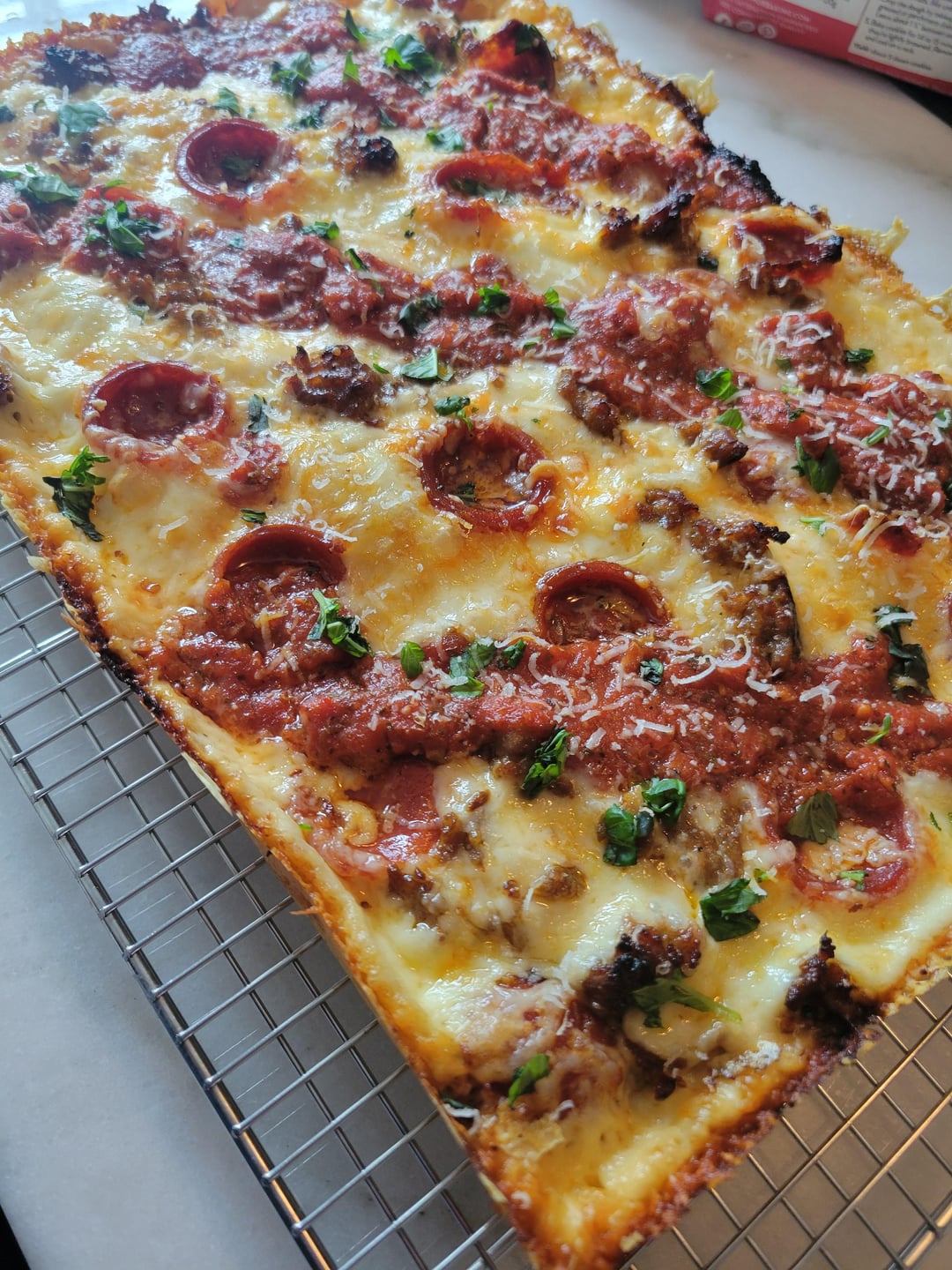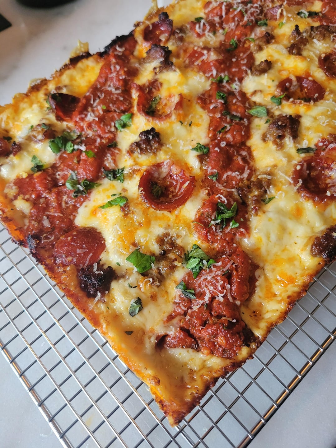 Hell yeah looks solid! Coincidentally, I actually made my first attempt at Detroit style dough as well. It’s proofing right now gonna throw it in the oven in about an hour, hoping for great success.