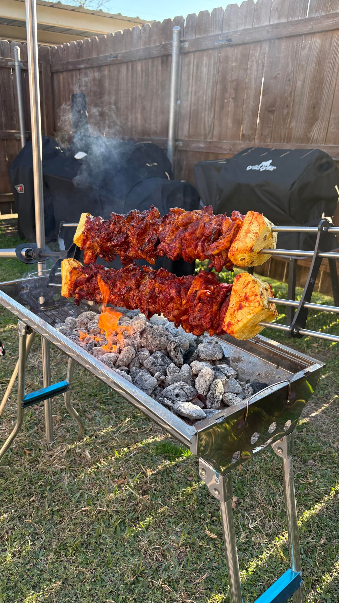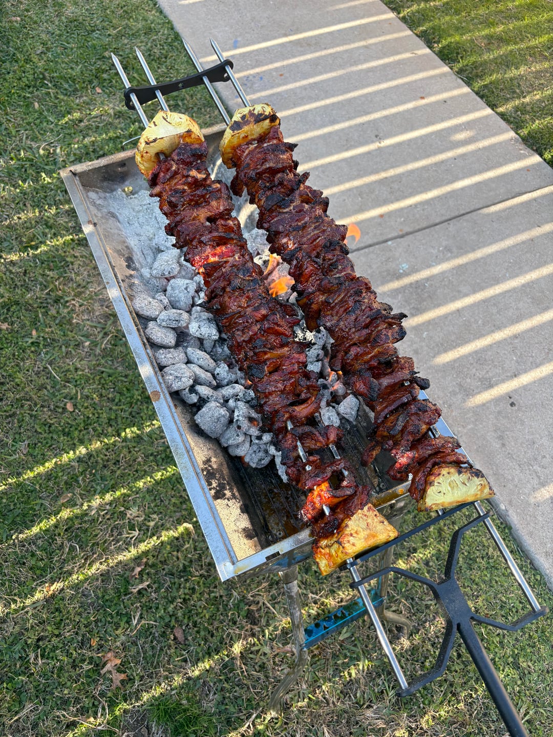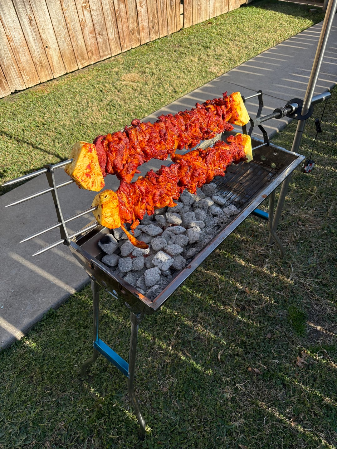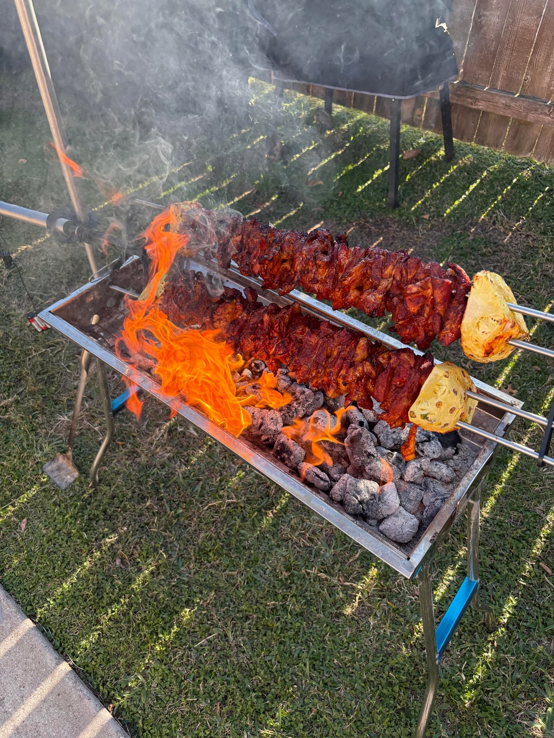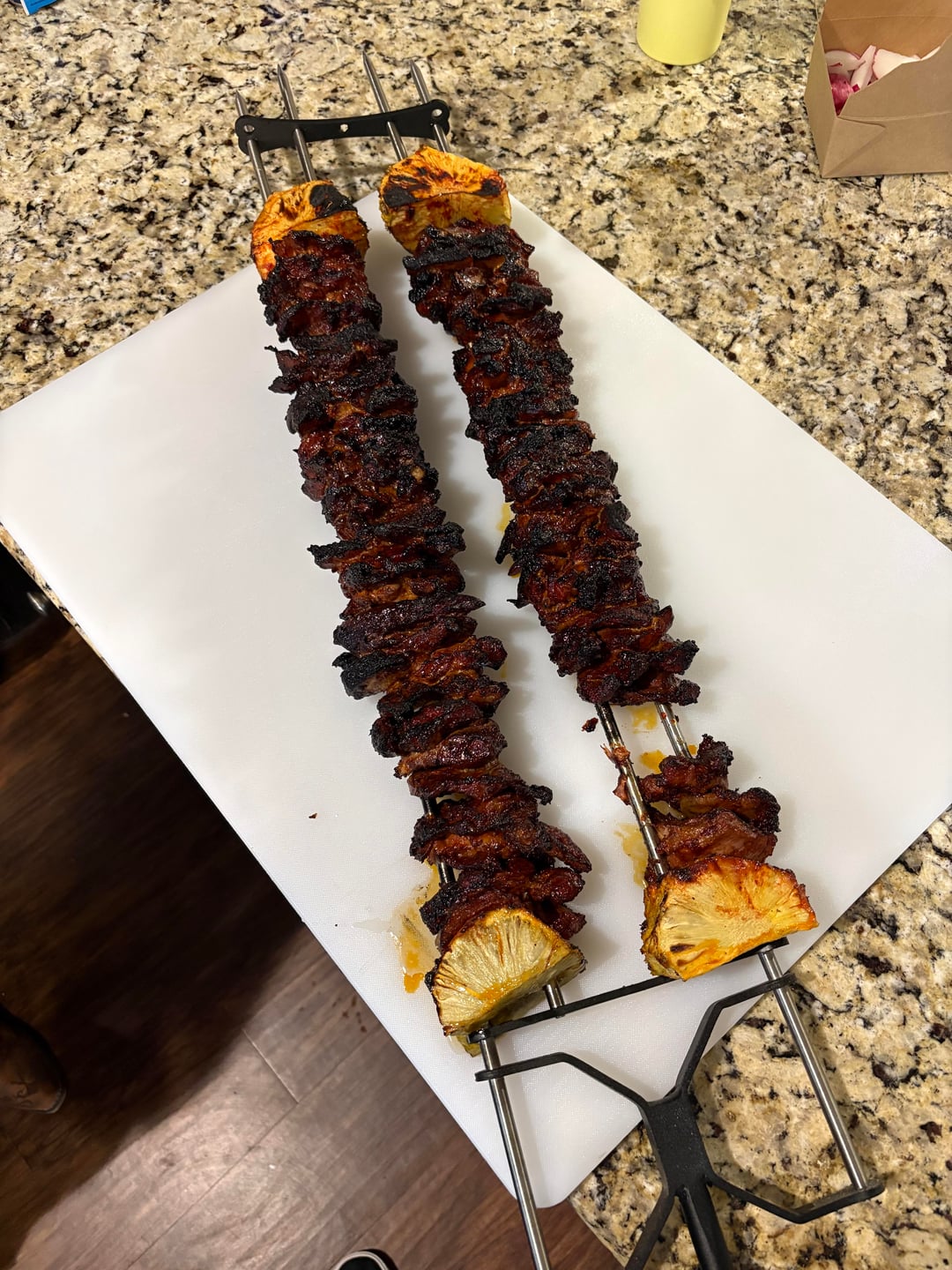 I do have a question though, isn’t the pineapple rendered somewhat pointless since you’re cooking it horizontally rather than vertically? Like other than catching some pineapple when you shave the meat, no juices are going to drip down while it cooks.