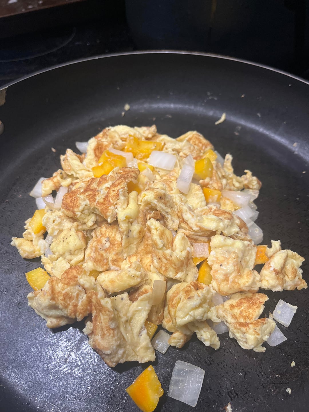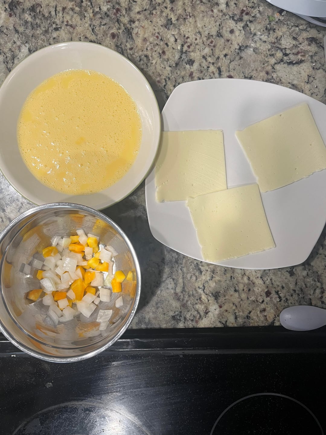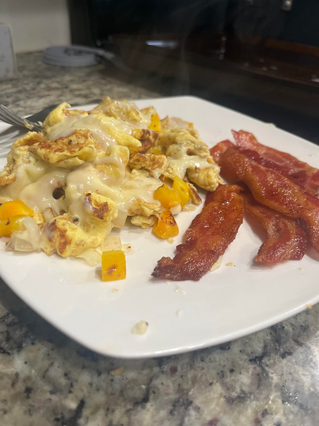 Share Facebook Twitter Pinterest LinkedIn Reddit Eggs, peppers, onions and cheese. Side of bacon. by Five2one521 Dining and Cooking