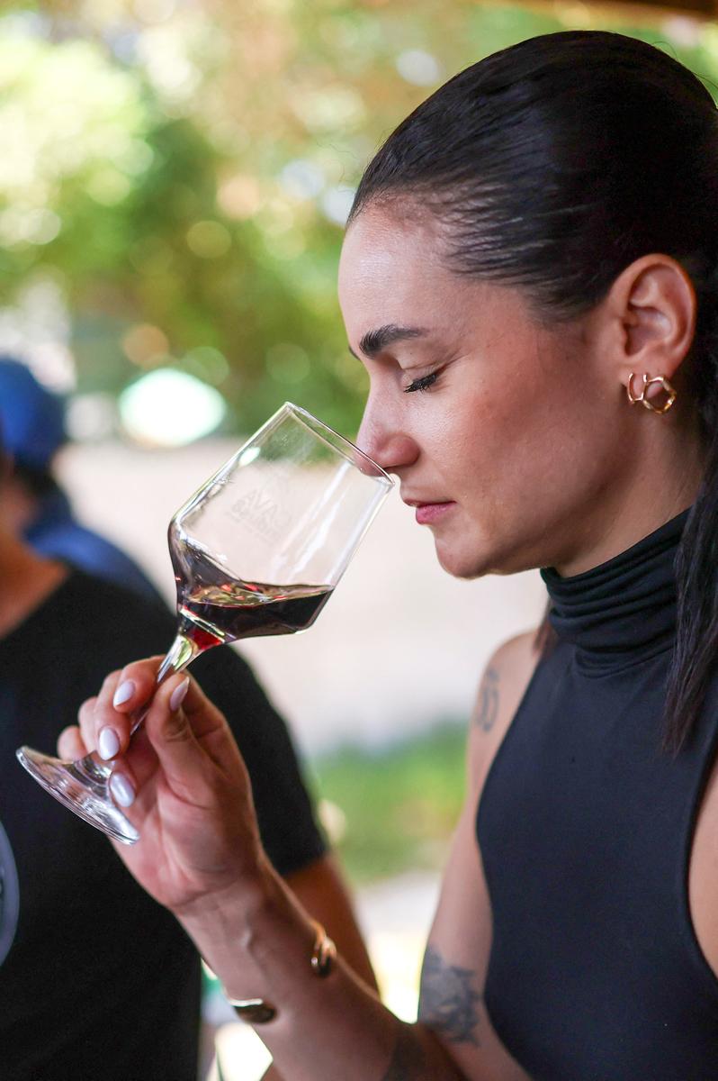 Brazilian sommelier Luana Balbine takes in the aroma of a wine retrieved from the bottom of the sea at the ODC diving center. All photos were taken in Pichidangui, Chile, on Jan. 22.
