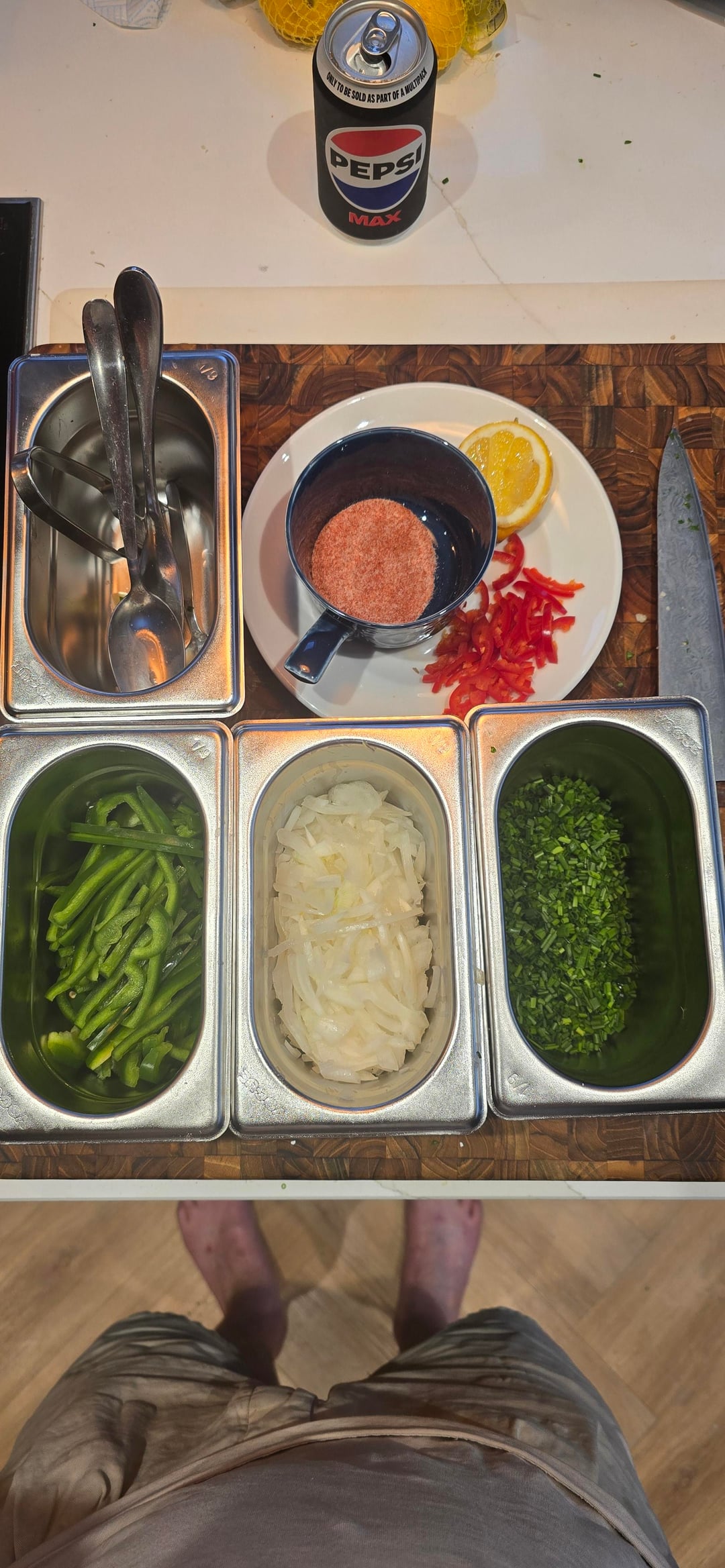 • ​Finish: Black garlic aioli, umami dust (salt, MSG, smoked paprika, sugar), fresh jalapenos, chives.