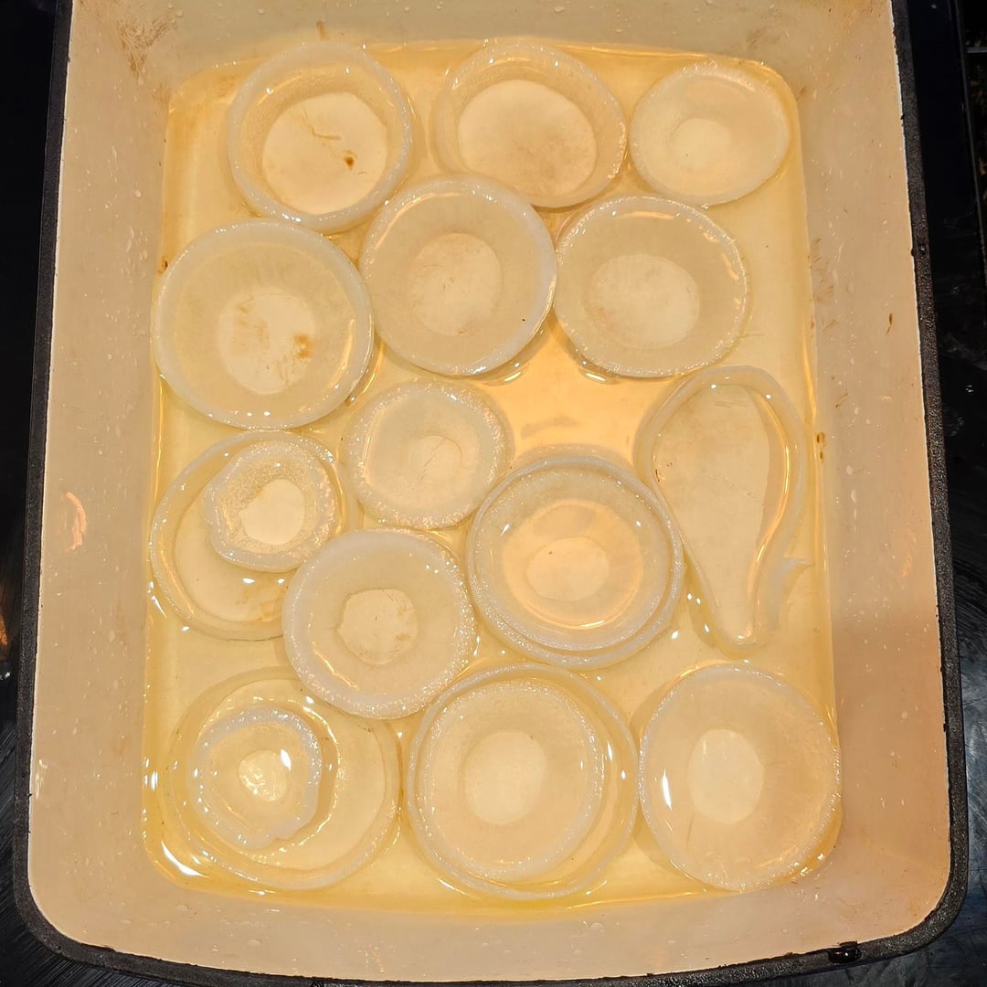 • ​Pickle & Prep: soak thick onion rings in a white wine vinegar brine.