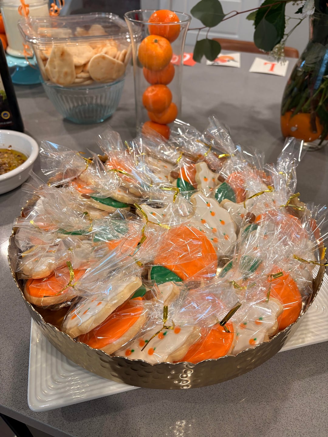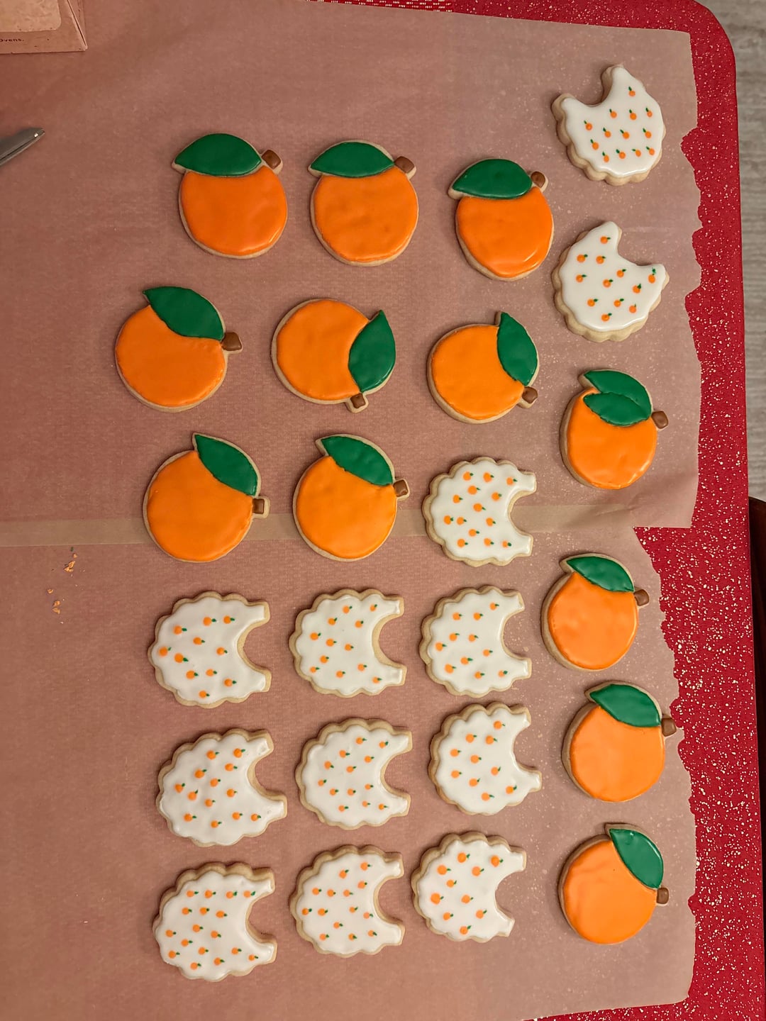 My first time making both this cake and using royal icing to decorate Sally’s sugar cookies (always my go to base cookie). Baby shower was clementine/citrus themed so this cake was perfectly on theme.