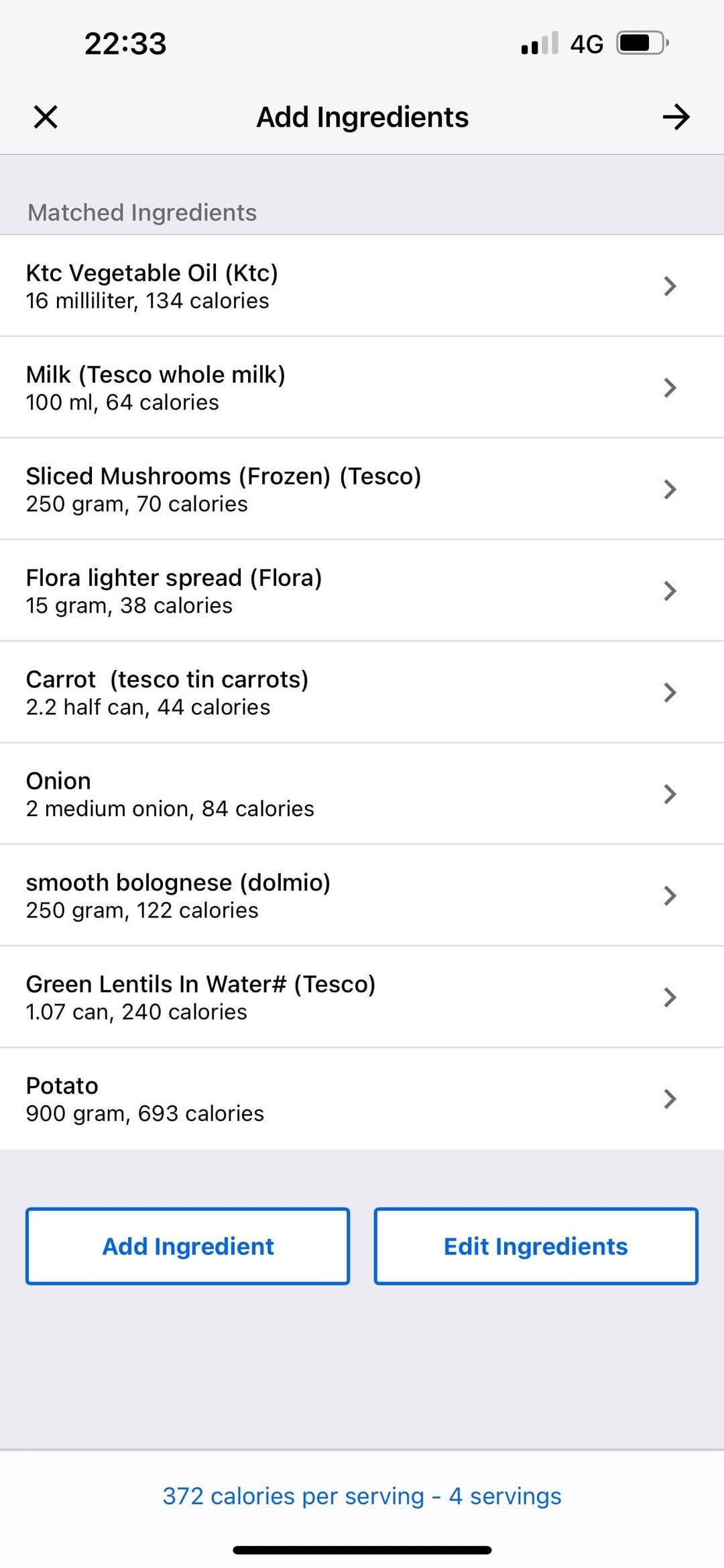 (The measurements should be 1 can of carrots and 1 can lentils but the cals were wrong on the app)