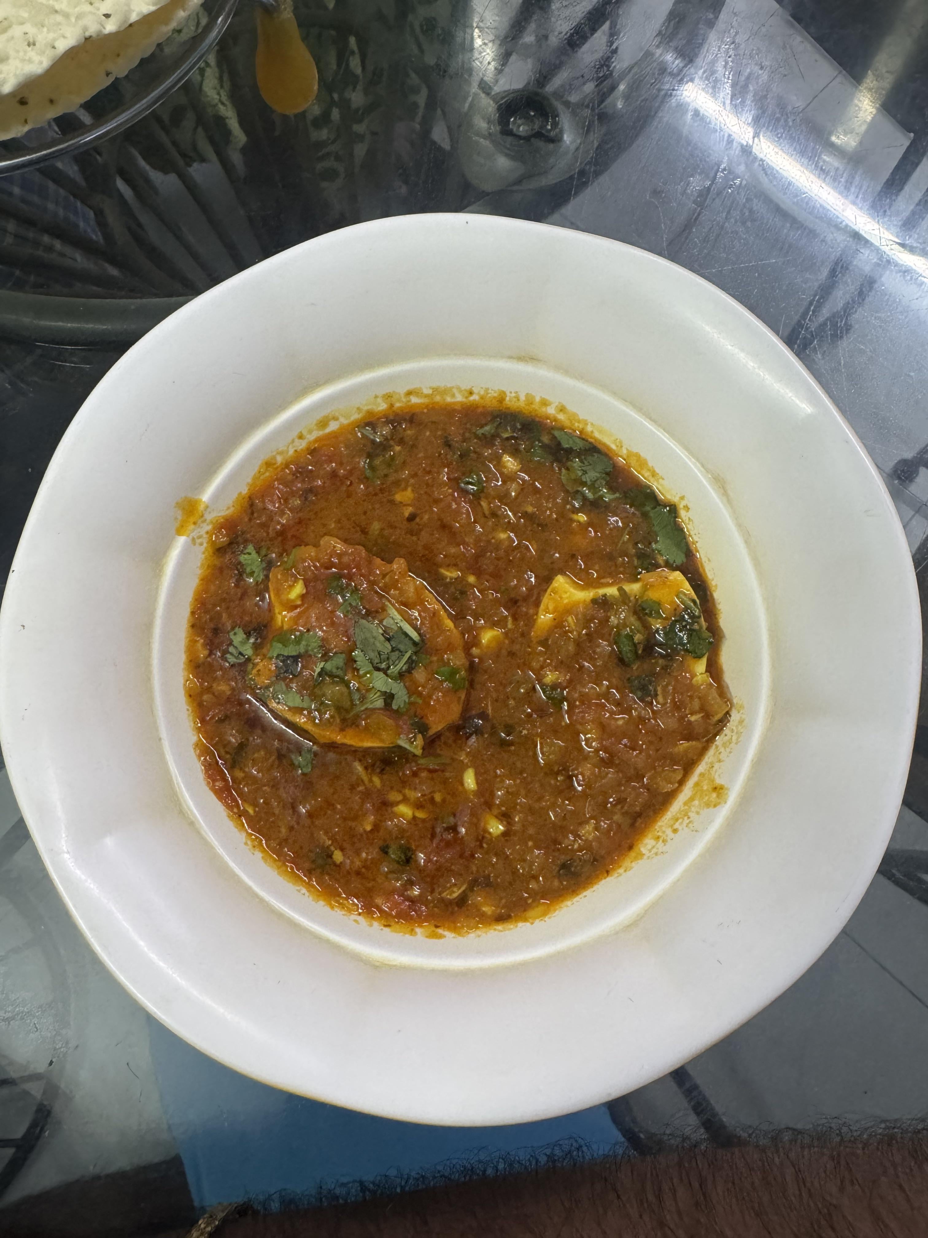 Wife: dhaba style egg curry (egg curry which is served in local Indian restaurants)