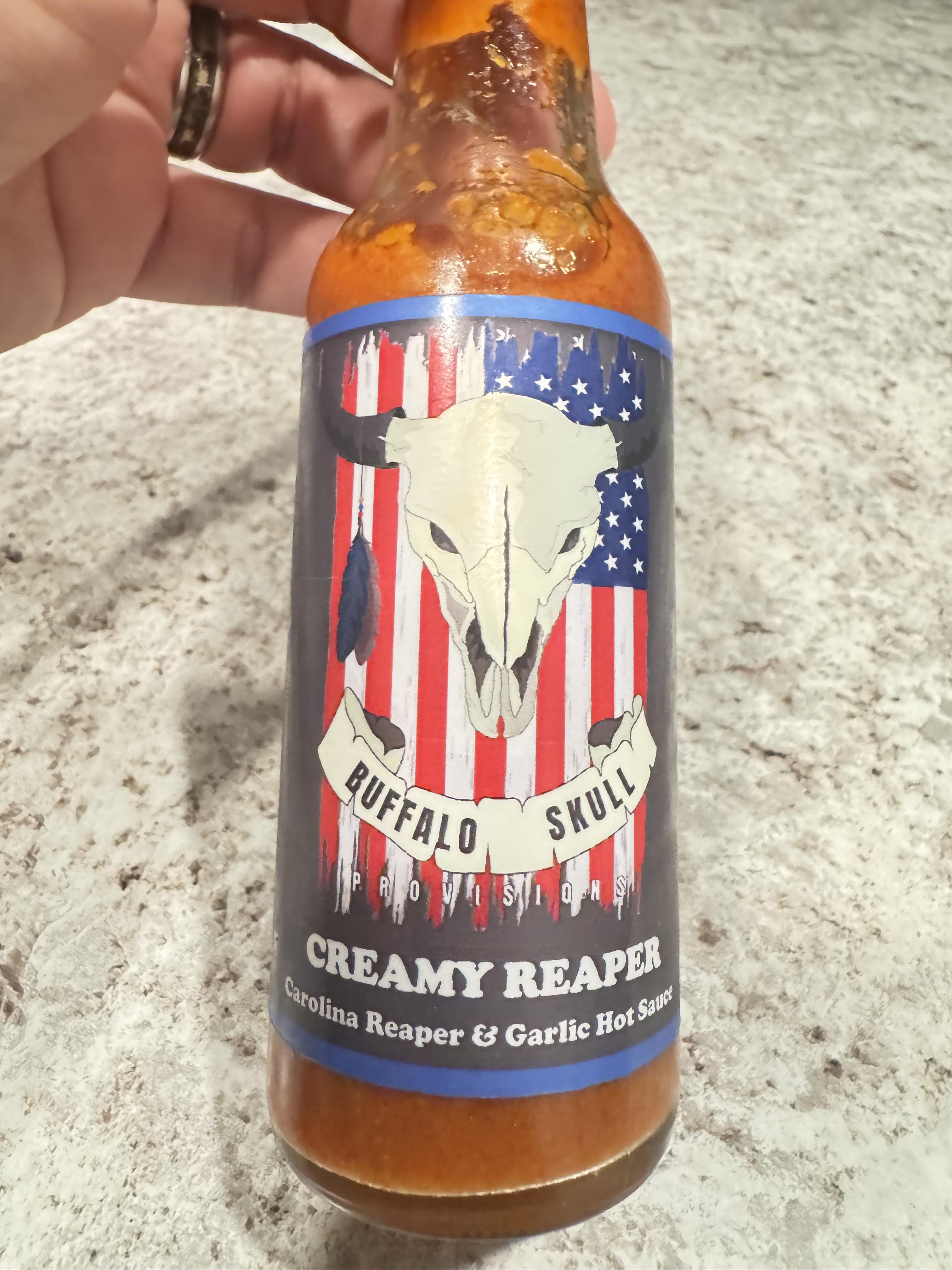 Browsed a mom and pop shop at our local Strawberry Festival and came across this. Apparently this shop has 5 sauces featured on Hot Ones, and this definitely has a quite the kick to it. Being a huge fan of Buffalo anything, this was their hottest sauce they had so of course I had to try it. Amazing head with great Buffalo flavor, definitely recommend.