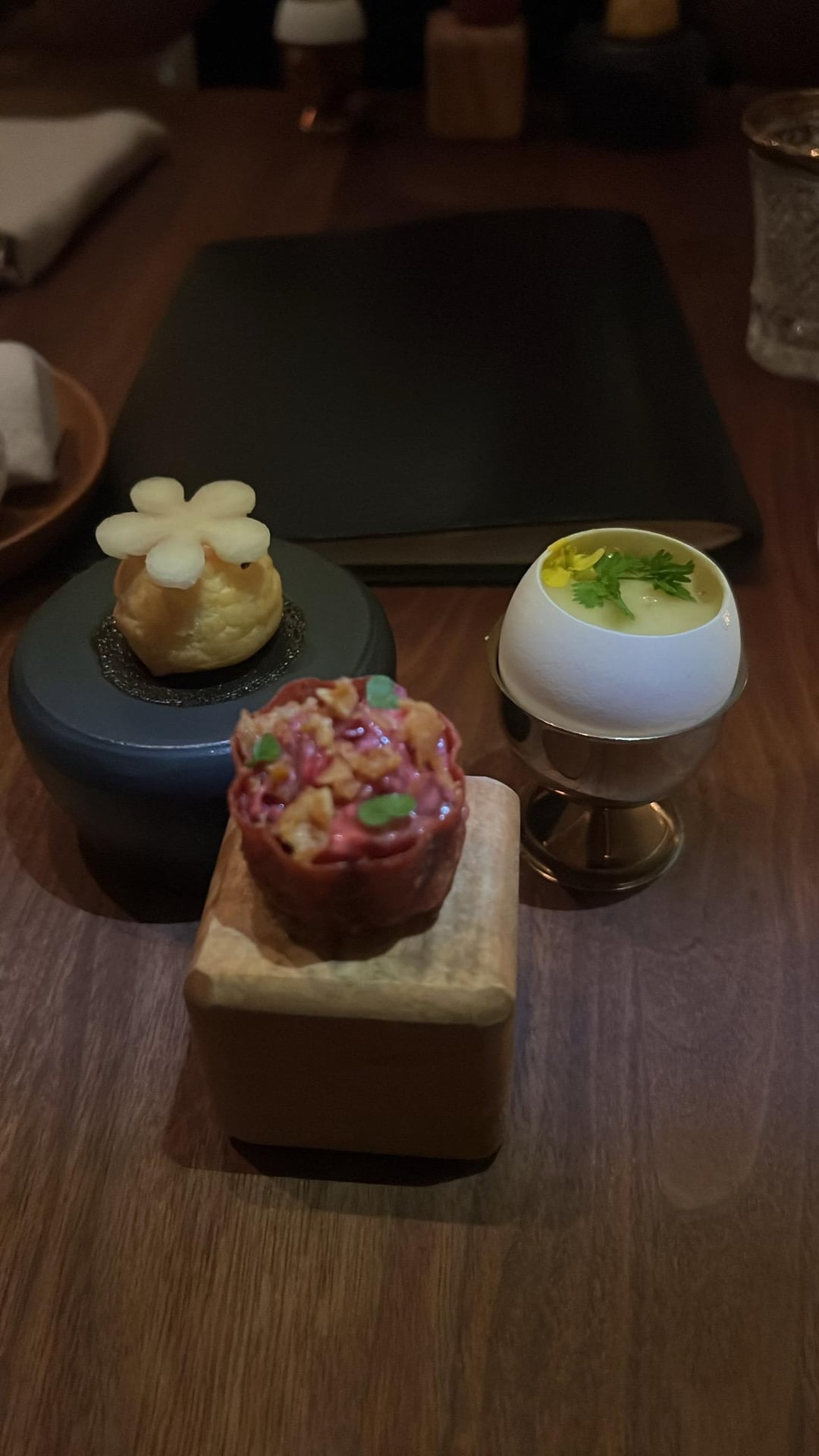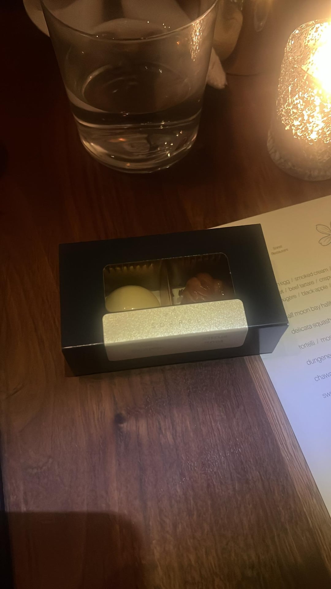 Hospitality was great as to be expected, had fun chatting with our servers they knew every dish inside and out. Was also pleasantly surprised to get a take home gift of the bon bon and citrus knot, got to end on a fun note!