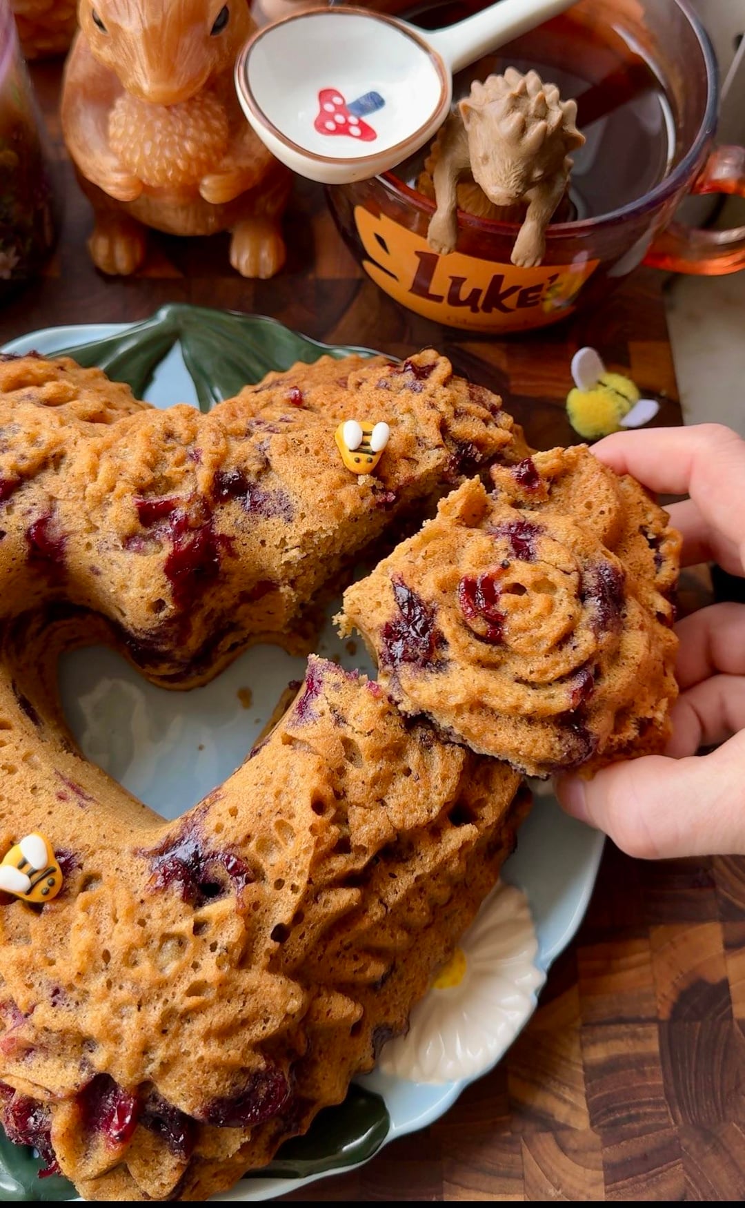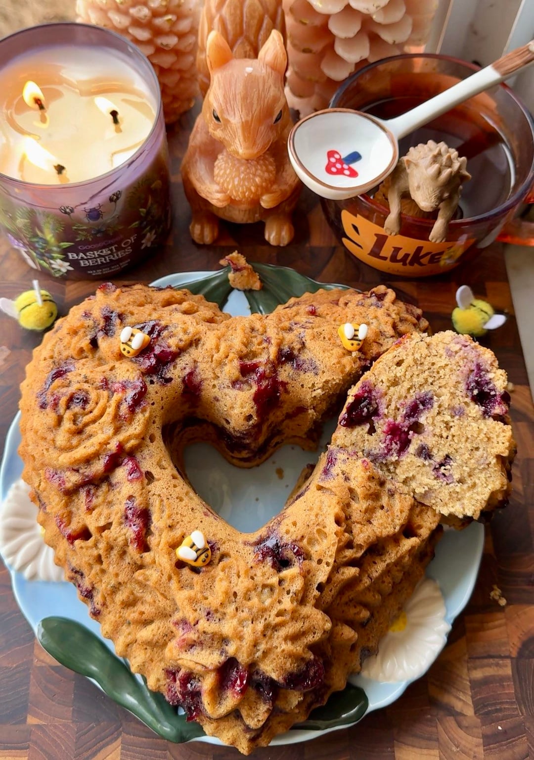 Been wanting this heart Bundt pan for ages. Finally caught it on clearance and had a gift card so it was meant to be. Decided to break it in with an earl grey blueberry muffin bread