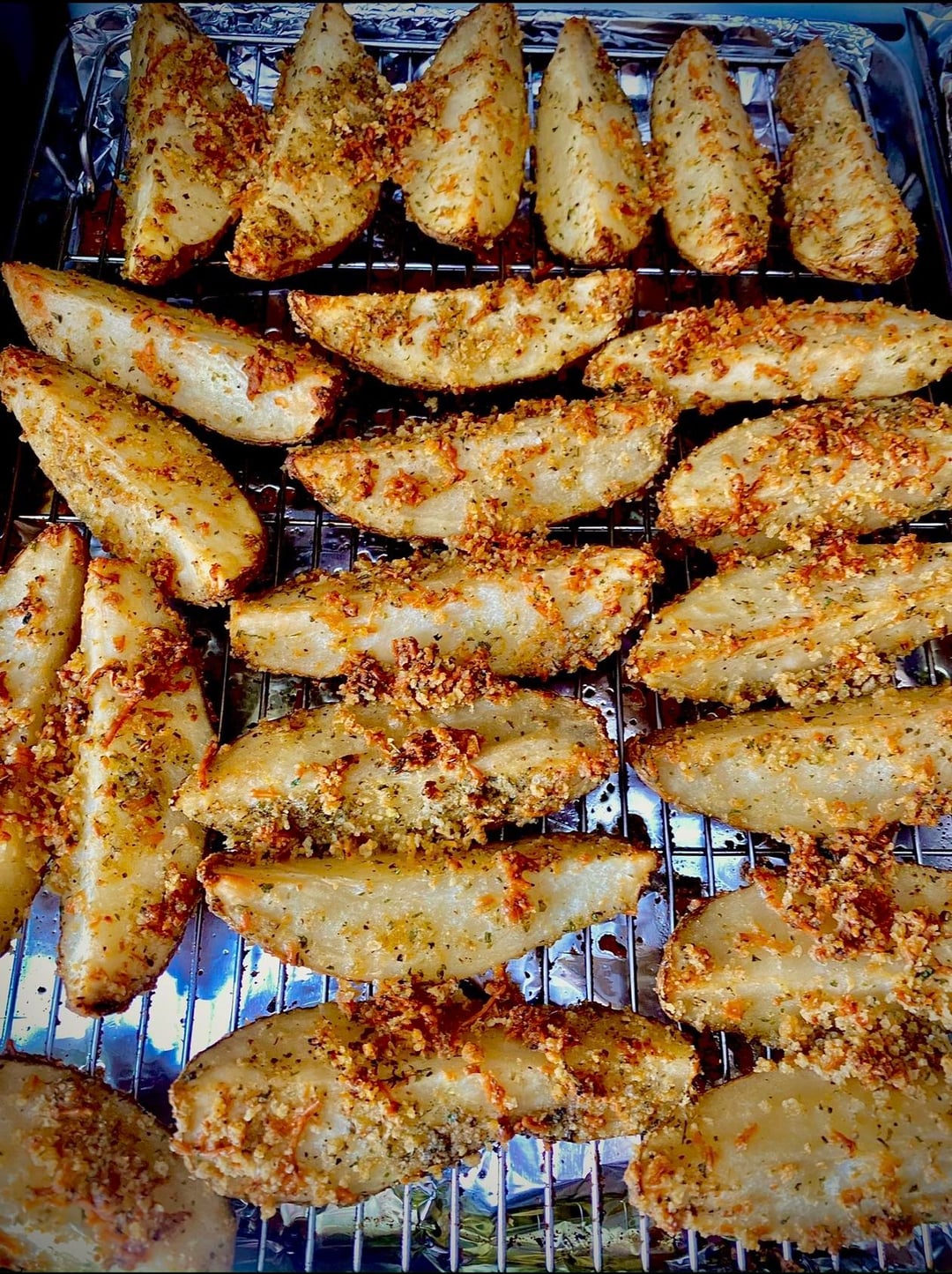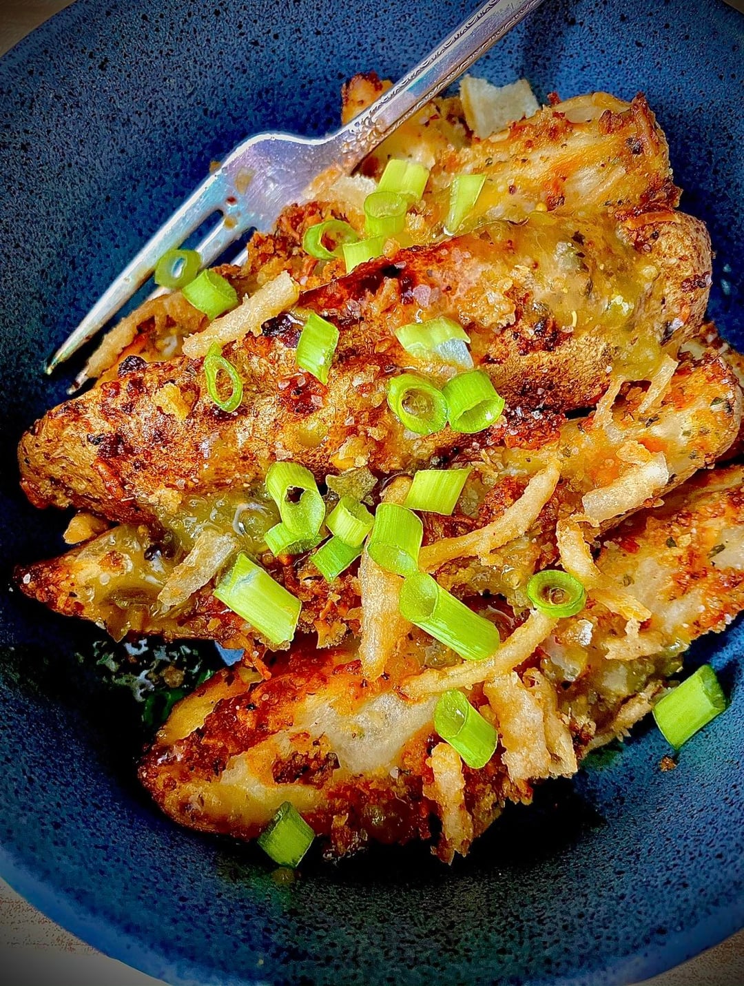 Made a sheet pan of roasted potato wedges with olive oil, panko, garlic and seasonings. Topped with jalepeño sauce and scallions and I made a vegan chipotle mayo for dipping. Satisfied my carby-craving!!