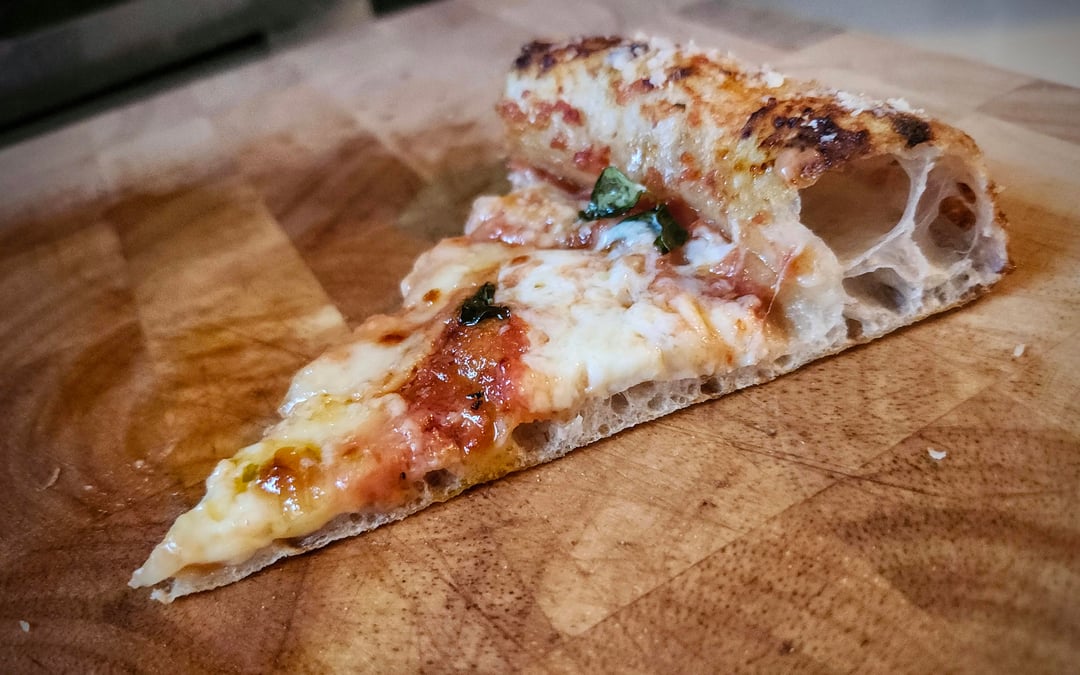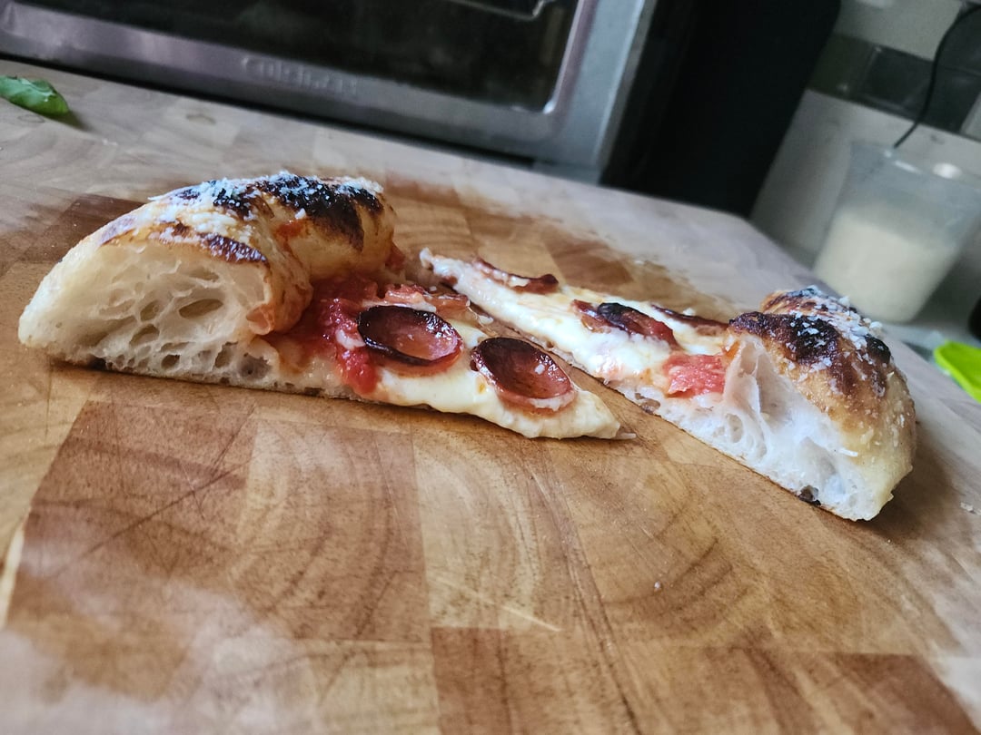 Nuvola Super with 5% Caputo whole wheat70% hydration15% inoculation3% saltCold proofed for 48 hours, room temp for 6Baked in the Gourmia pizza oven on biscotto stone.by chetdesmondbluerose 5 Comments badbitchherodotus 1 week ago Holy hell…That looks amazing. Excellent work. DMC_Ryan 1 week ago High-end restaurant quality. Bravo! stabbinfresh 1 week ago That’s looks real damn tasty. dentalexaminer 1 week ago Amazing looking. Is the dough chewy? I want to try a sourdough so bad. I love crisp pizza bones with chewy insides. 🙂 SkaiHues 1 week ago That looks amazing…. type of cheese used?