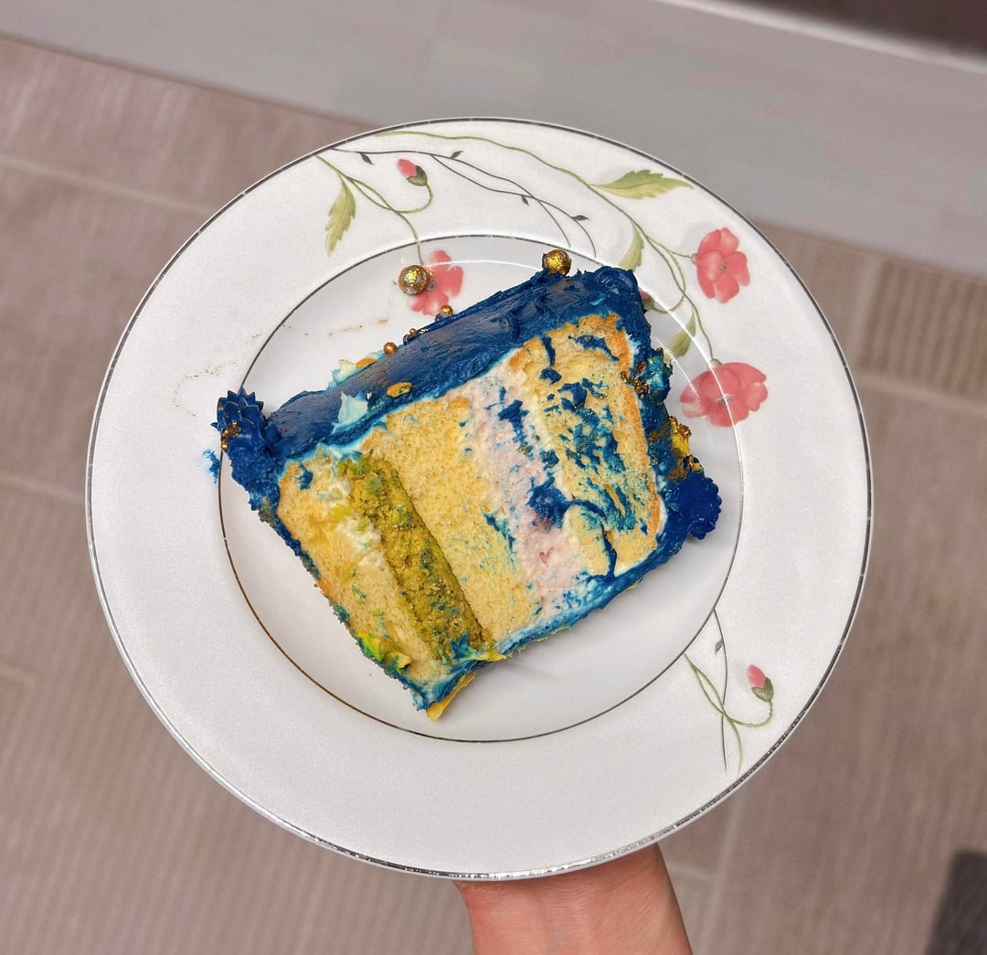 In the first photo, itβs made with vanilla bean chiffon with crΓ¨me brΓ»lΓ©e custard, and strawberry mousse.