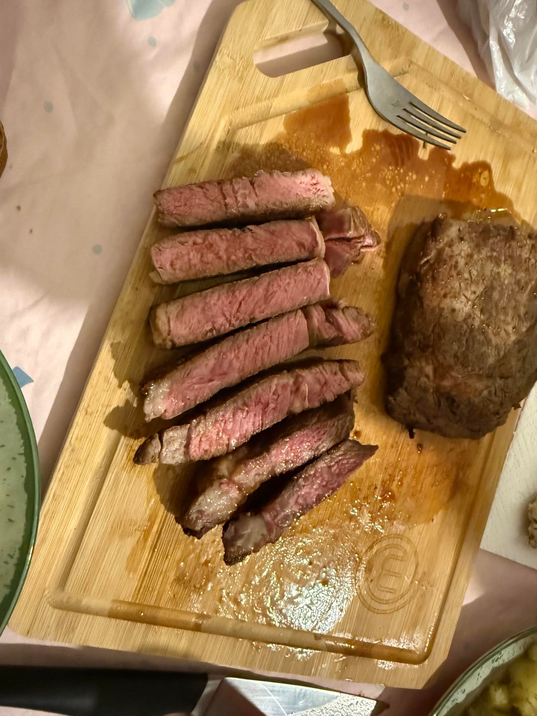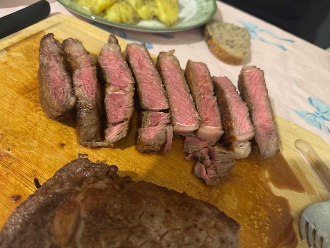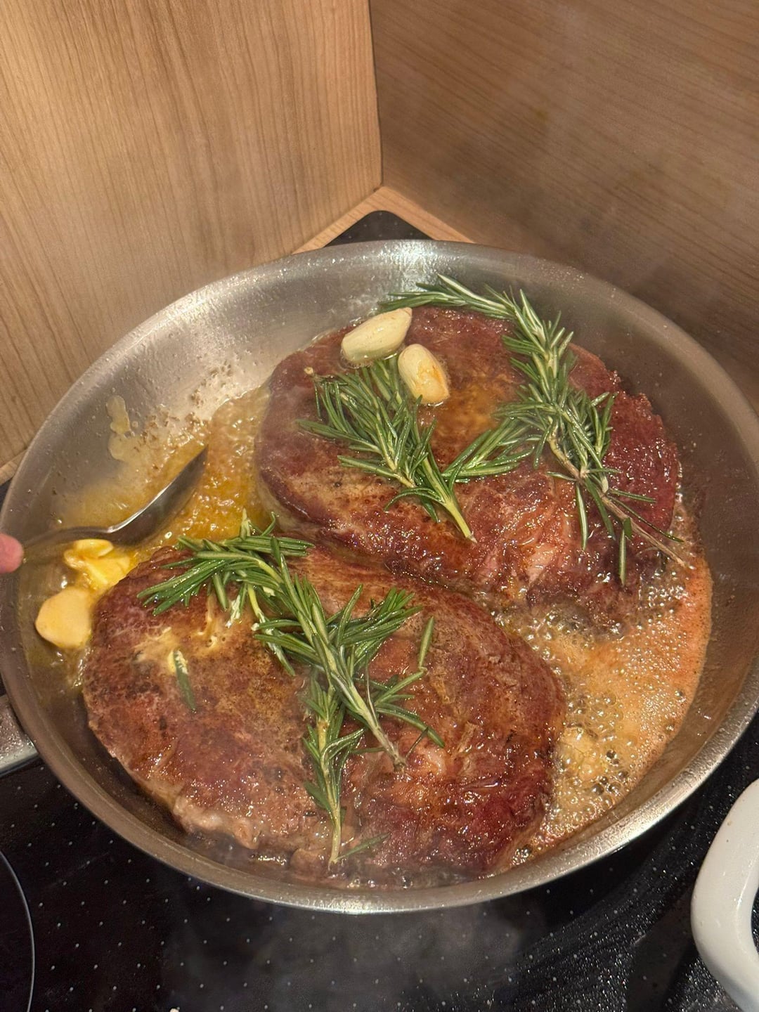 I wouldn’t have thought the steaks would turn out as good with how overcrowded the pan looked, but there is barely any visible grey area, very well cooked indeed