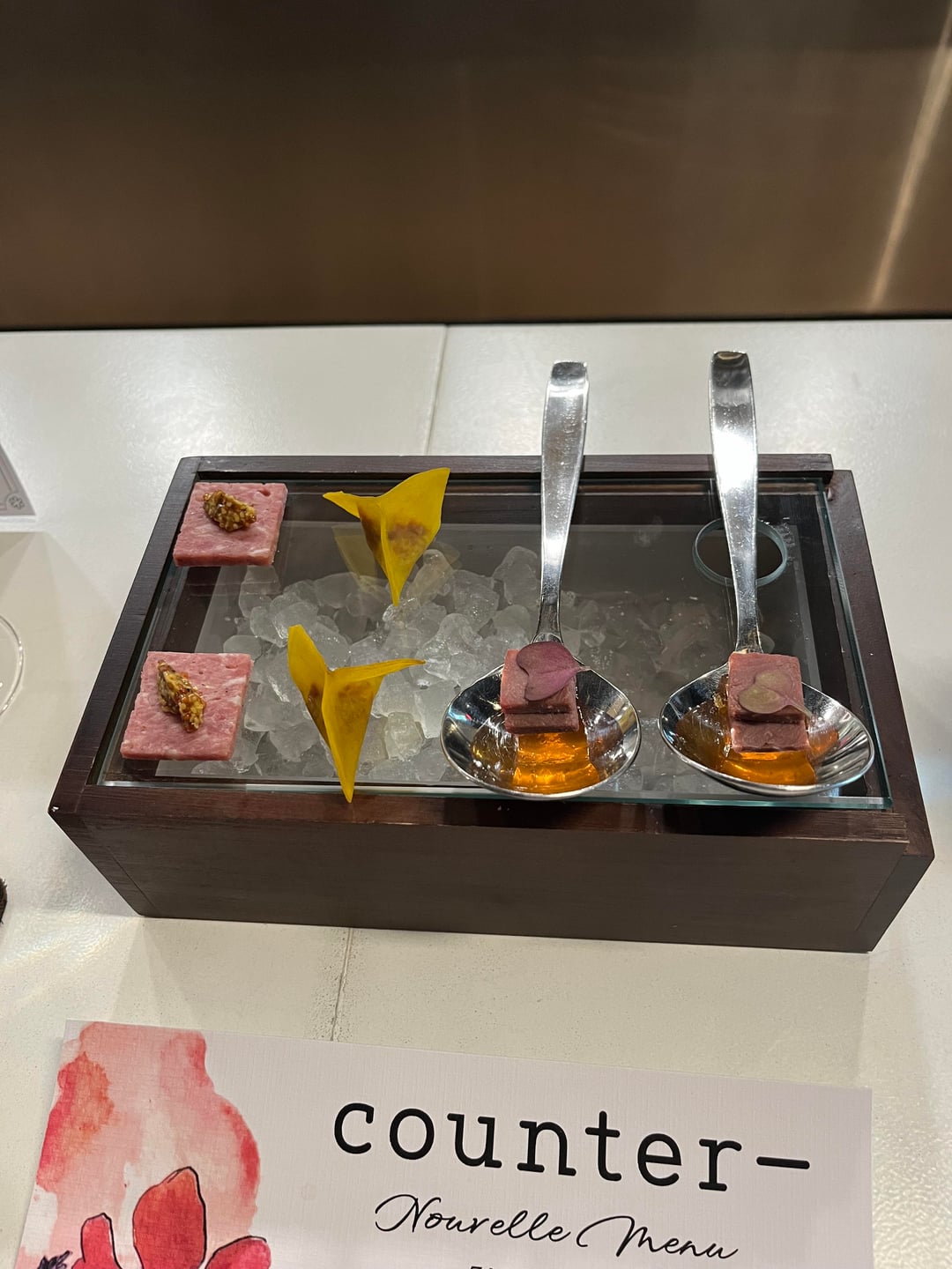 I dined at the newly minted Michelin-starred restaurant Counter-, North Carolina's one and only, and it is easy to see why they earned this accolade. It's a restaurant with an expiration date, as they have a set amount of menus they will make before they shut down, and | just so happened to have the exact middle menu. Now l am by no means a food expert. Most of you reading this undoubtedly have a more refined palate and a deeper pocket to be able to have more of an expertise than myself. However, what I can definitively tell you is that eating at Counter- was the best dining experience of my life.