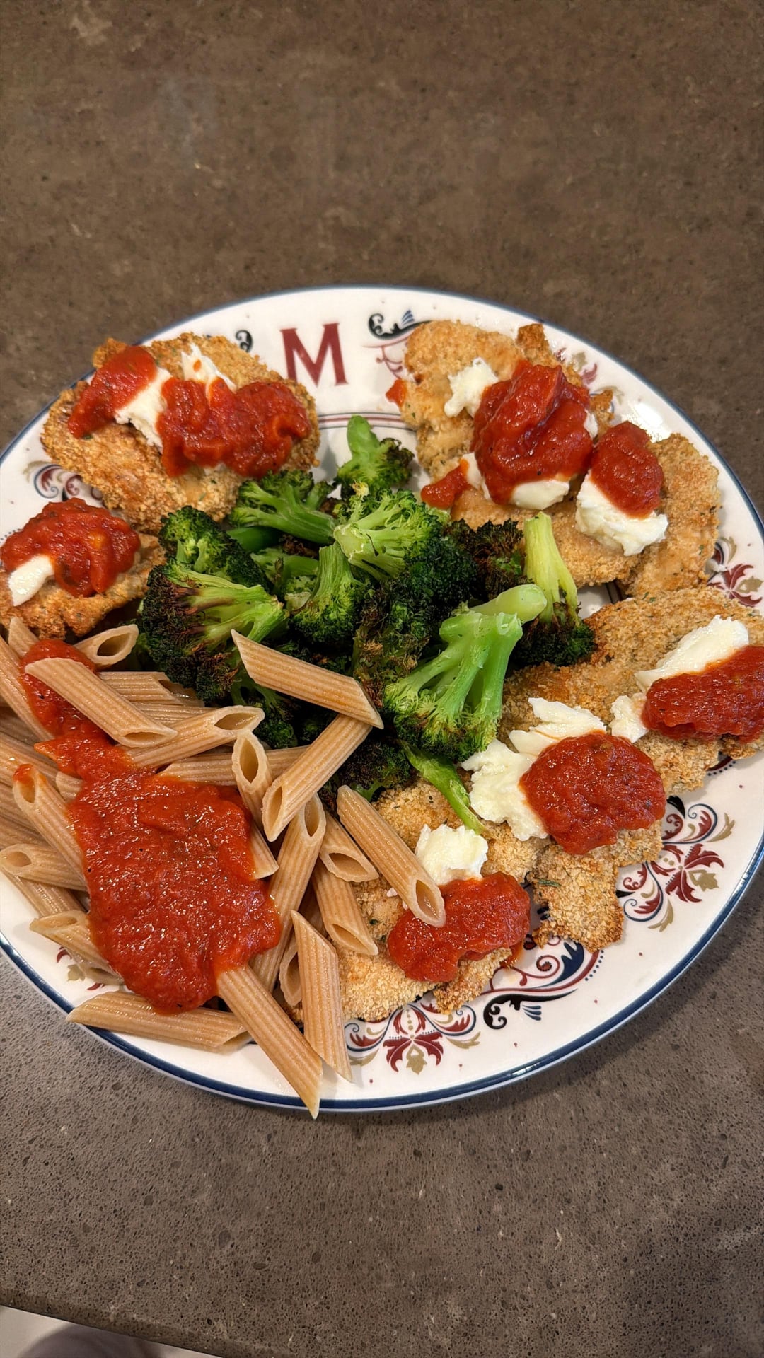 Air fried Chicken Parmesan with mozz, whole wheat penne, and broccoli 😍You could drop the calories by 80 by skipping the mozz And eating less chicken63.7g carbs/11.2g fat/65.5g proteini eat 1,442 calories a dayby Takeabreath_andgo 2 Comments iammooseAMA 22 hours ago That looks delicious!! Fuzzy-Requirement456 17 hours ago That looks great! Thanks for sharing!
