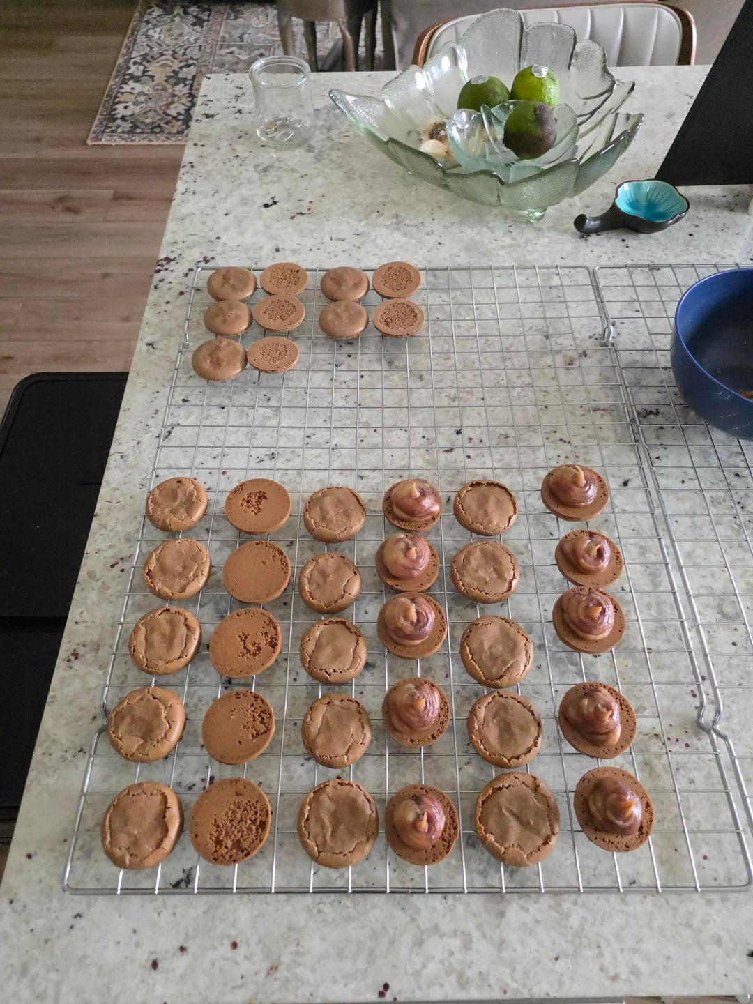 One more thing, the little holes/bubbles on your second image, my last couple batches I’ve experimented with using a toothpick to make those disappear after you’ve dropped the trays on the counter a few times. If you get to them quickly after piping them it seems to work. Who knows could be the blind leading the blind – so grain of salt on everything from me. 🙂