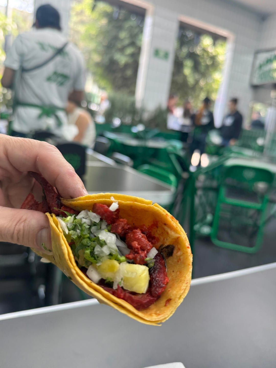 Got da sampla’ (not called) that at Atarantados in Condesa. They specialize in a variety of Trompo and these represent one each of Pastor, Res, Res con Chicharrón, y Trompo Negro (pork with a black rub / marinade).
