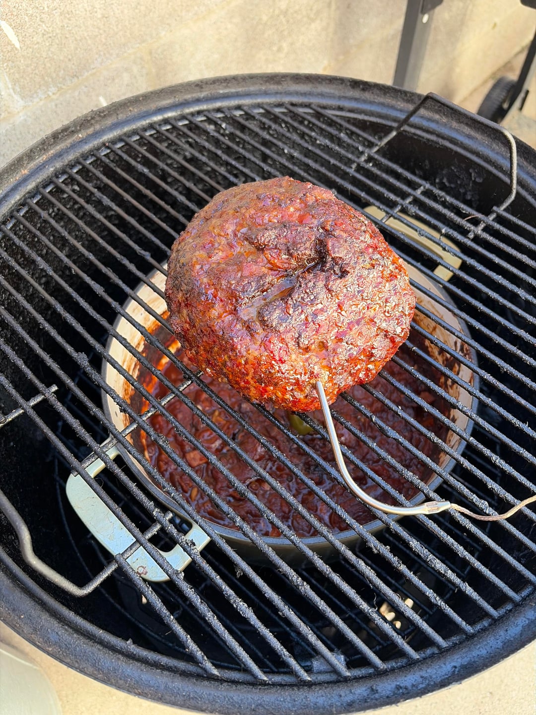 Gave it a try. Tasted great but the meat was a dry in my opinion. Would spraying it every 30 minutes or so help? Went with a pound of ground beef, pound of sausage, pound of bacon, and a brisket/chuck burger patty mixture.