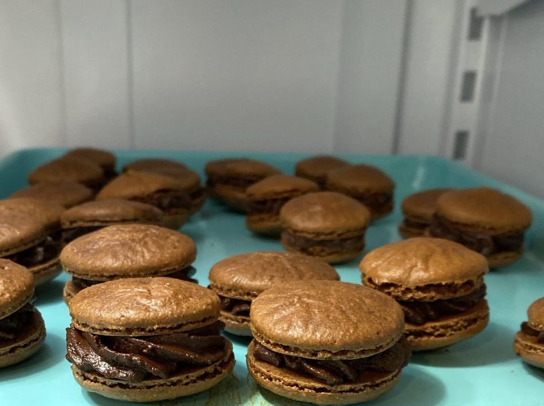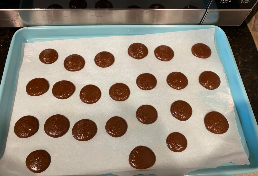 This is my second ever batch of macarons, they’re chocolate flavored with a chocolate ganache! I followed the recipe by NYTCooking.