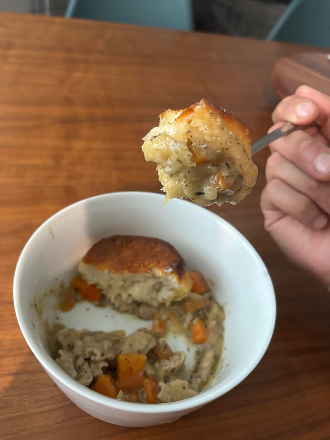 The biscuit pot pie is a household favorite! I make sure to order it as often as it’s available. 😛