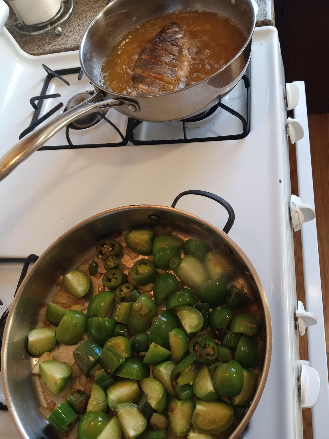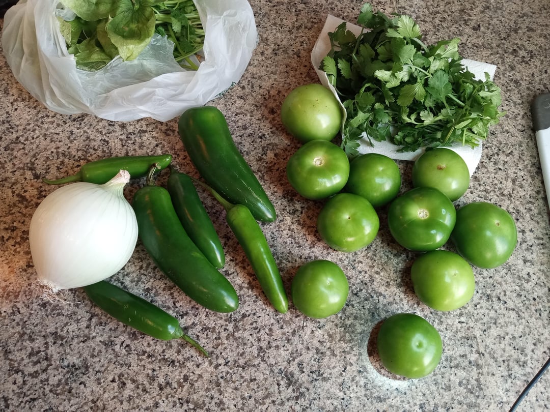 the only things I did differently – swapped out some serranos for jalapenos and I added some chicken bullion to the salsa. not much.