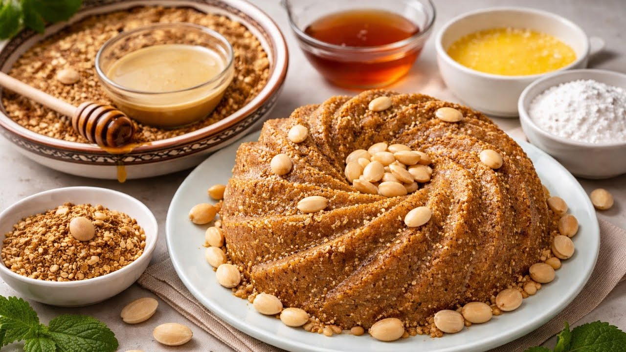 ستتعلمون في هذا الشرح طريقة **تحميص الدقيق**، **طحن المكسرات**، و**خلط المكونات** للحصول على قوام مثالي ونكهة لا تقاوم.
