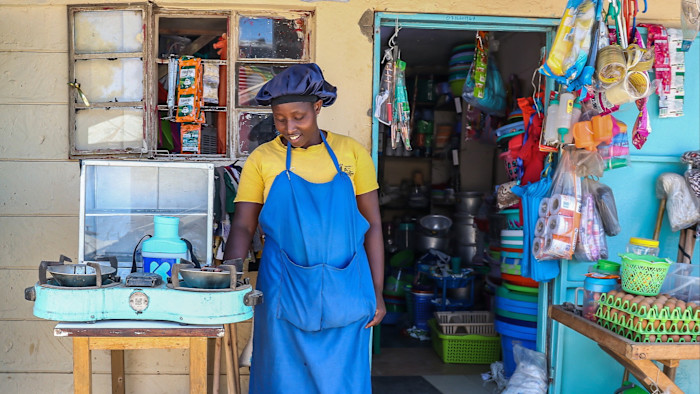 Koko cooker fuel for sale in a shop in the Kibera informal settlement on the outskirts of Nairobi © Atieno Muyuyi/AP
