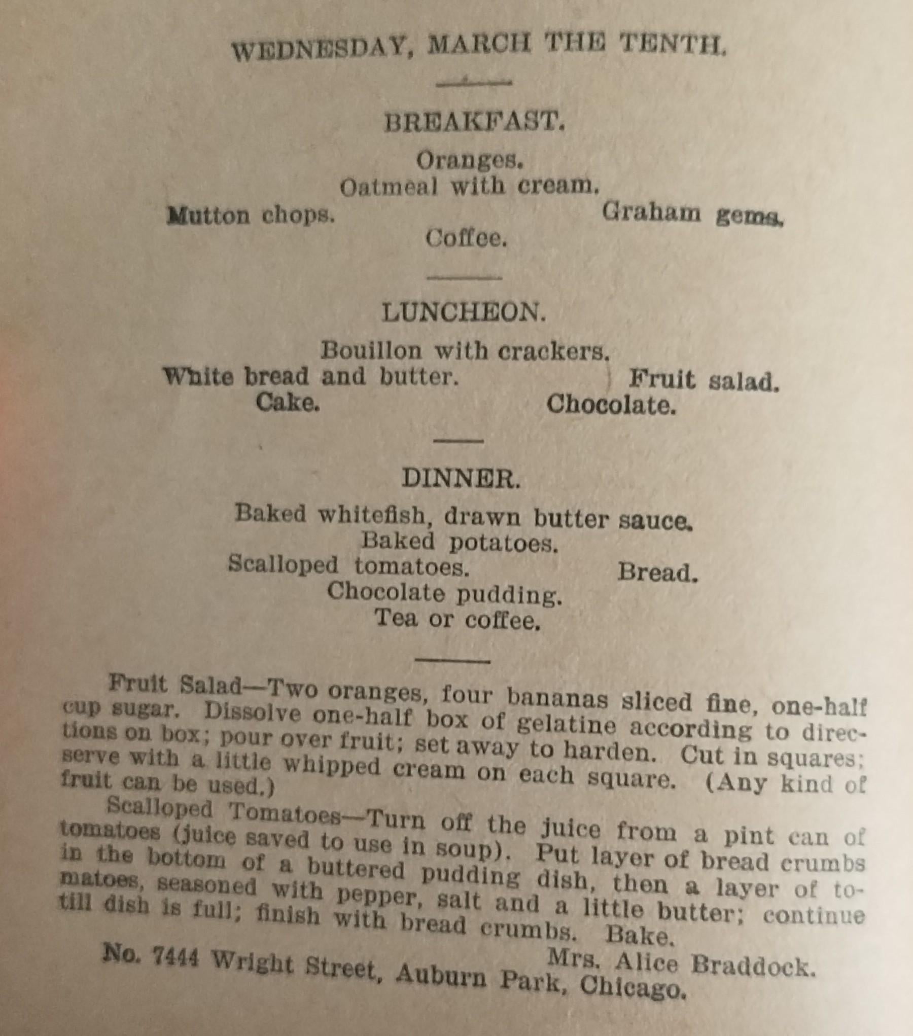 Well before 1896, Chicago was the centre of the meat-producing world, and mutton was one of the more affordable meats, so I guess this makes some sort of sense. It just seems so…minimal. At least fry up some leftover potatoes from last night’s supper!