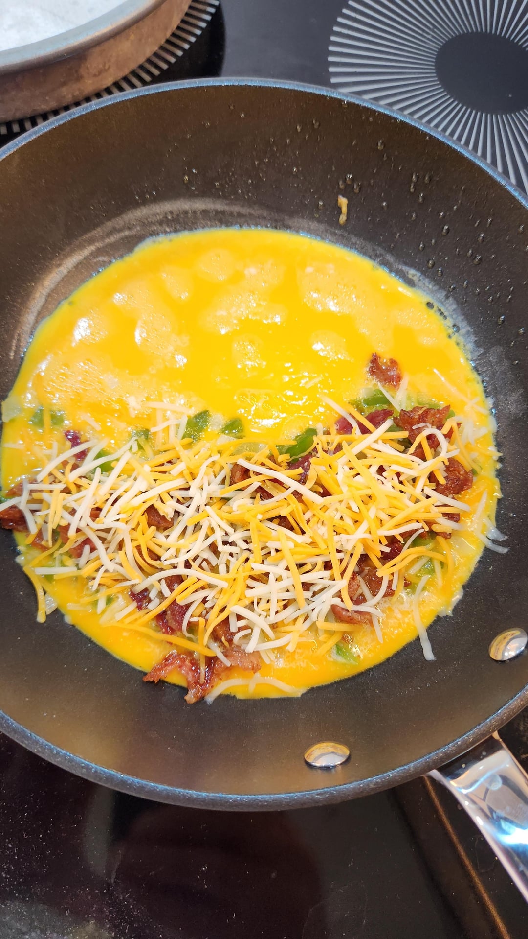 Share Facebook Twitter Pinterest LinkedIn Reddit Omelet with peppers, onions, cheese and crumbled bacon by GuavaOdd1975 Dining and Cooking
