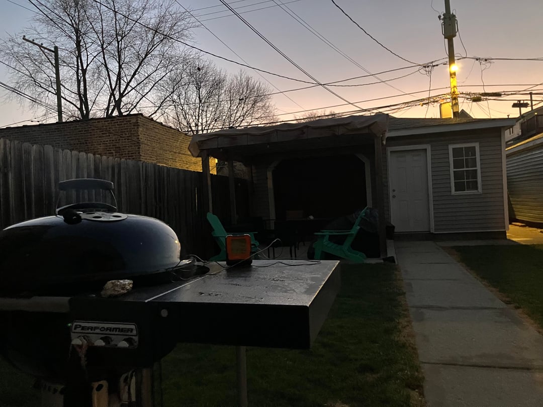 Okay update 1: so far NOT GOOD!!! 2.5 hrs in the temp was dropping FAST! When I had a second to see what was up I was at like 180 😕 the snake was already almost completely burned. I think the pieces of charcoal I used were too small, and with the vents open they burned very quickly. I rotated the grate and pretty much just dumped a bunch of charcoal on top of the end where there was burning pieces. I know it’s not a great idea because it may throw dirty smoke at the meat but I don’t really have a choice. I think I’m gunna have to switch methods and just keep a pile on one side and feed it rather than keep trying to snake it. I thought using big pieces would make it burn hotter, but I think it would’ve been slower in hindsight. So for those of you reading this in the future thinking of snake method with lump charcoal- consider using bigger chunks and stacking them a bit higher. I thought what I did was about equal to 2 stacks of briquettes but it’s definitely not.