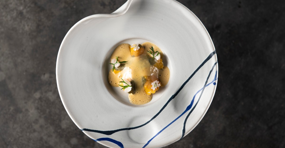 Find chef Phillip Frankland Lee’s Michelin-starred Pasta Bar (stylized as Pasta|Bar) hidden on the second floor of a sprawling Encino megaplex anchored by a California Pizza Kitchen and a Coffee Bean and Tea Leaf. Diners are whisked into a moody bar and treated to savory canapes and an elaborate cocktail made using a Japanese cold drip tower before taking their places in the main dining room. If you’re seated in one of the 12 seats perched along a curved counter that faces an open kitchen, you have direct access to head chef DJ Nelson and his merry band of cooks as they prepare the evening’s dozen courses. There’s plenty of pasta, of course, along with homemade bread to sop up sauces and seasonal flourishes grown less than a mile away in the restaurant’s garden. Staggered seating and a head-bopping playlist make for a relaxed party atmosphere.