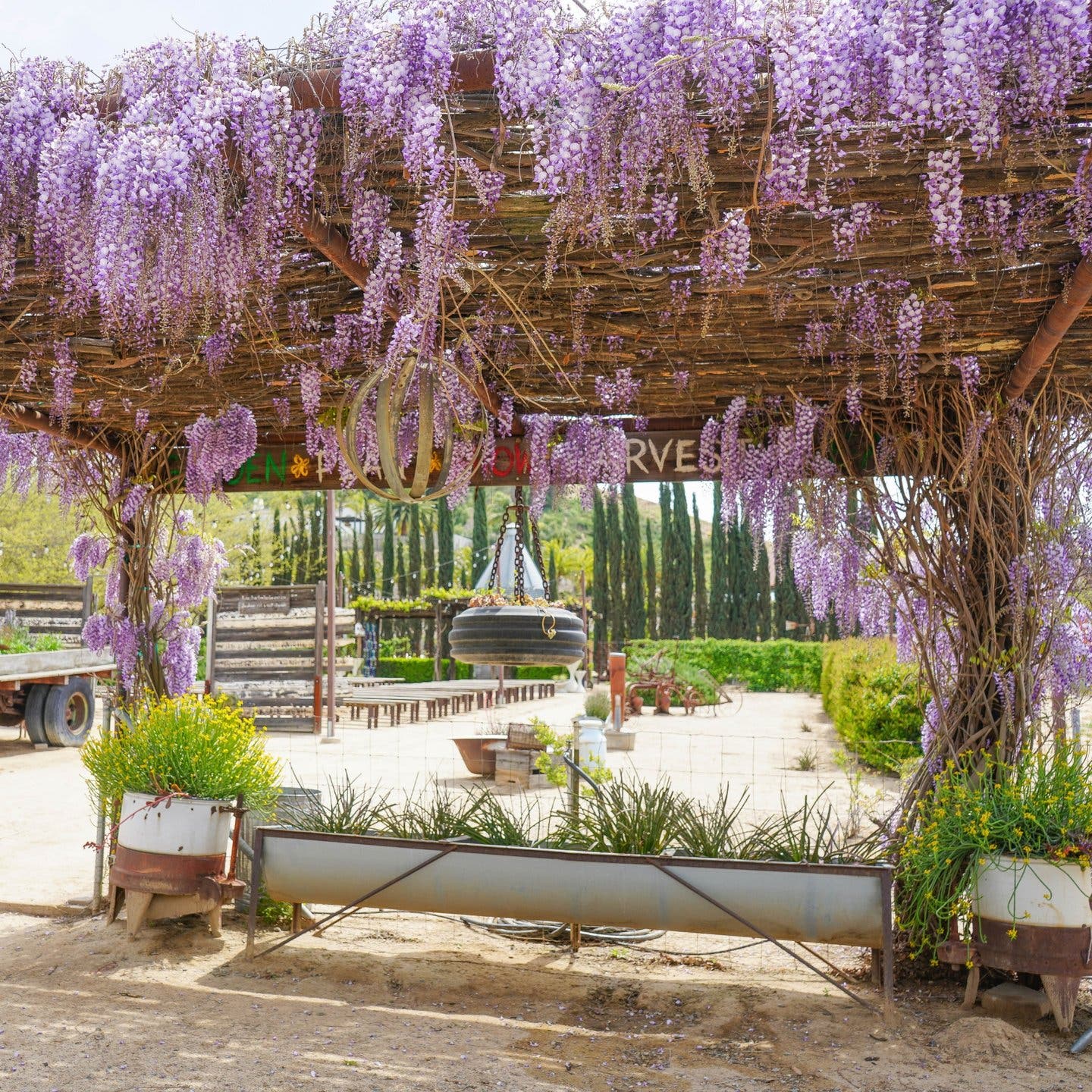 2. Somerset Winery, located at 37338 De Portola Road, offers a wisteria archway is exploding with blossoms. “This hidden gem adds a touch of natural beauty to the winery, making it a must-see spot while enjoying a wine tasting in Temecula Valley.”