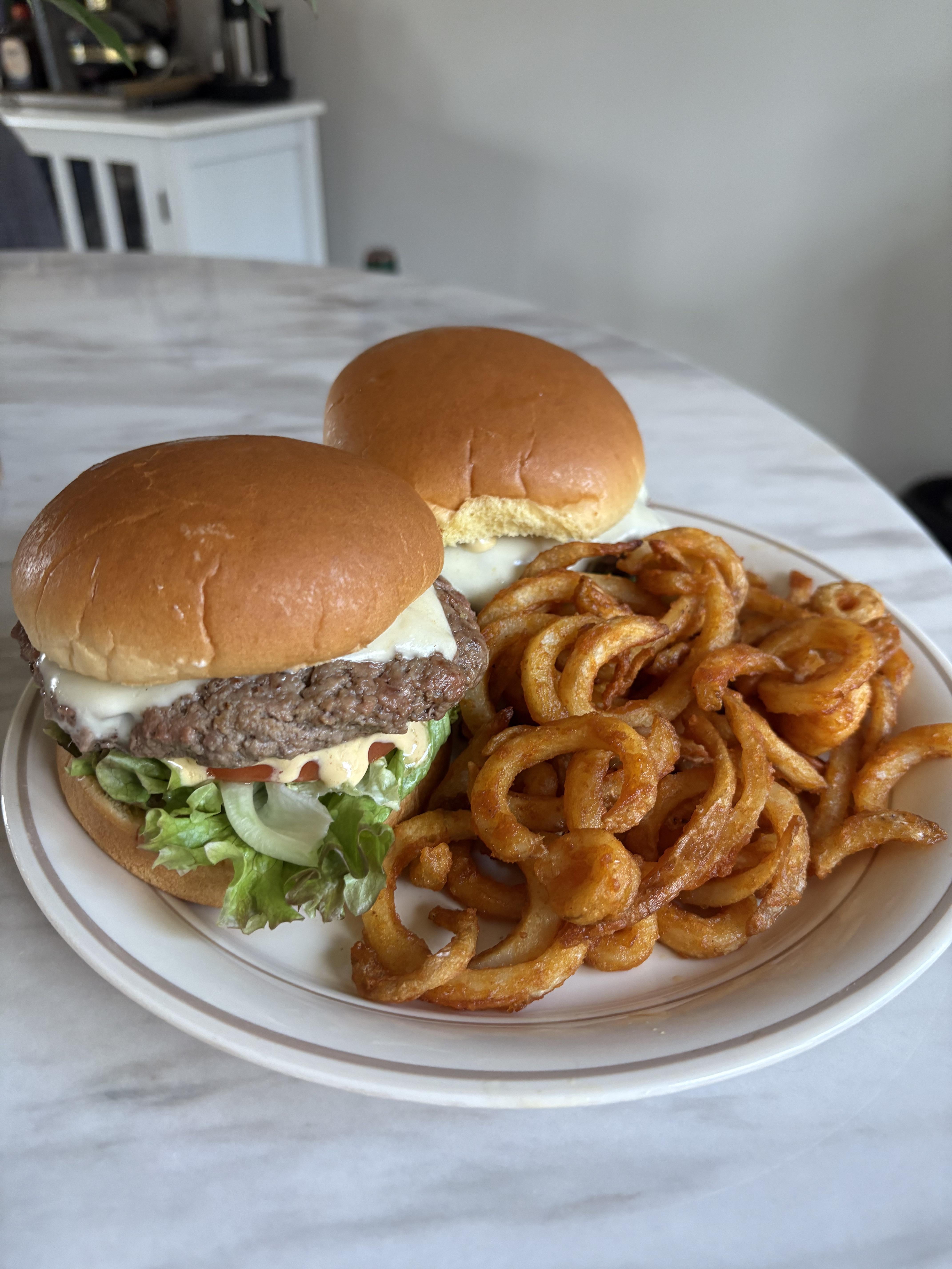 A good day for burgers and fries. Cooked medium and keeping it simple with lettuce, tomato, American cheese and a homemade sauce. Curly fries are always a great choice.by Ntwadumela817 4 Comments SleevedRedElk 7 days ago Looks delicious MagazineDelicious151 7 days ago Simple is the best sometimes n5nnnnn 7 days ago That’s my ideal meal Traditional_Isopod80 7 days ago Yummy!
