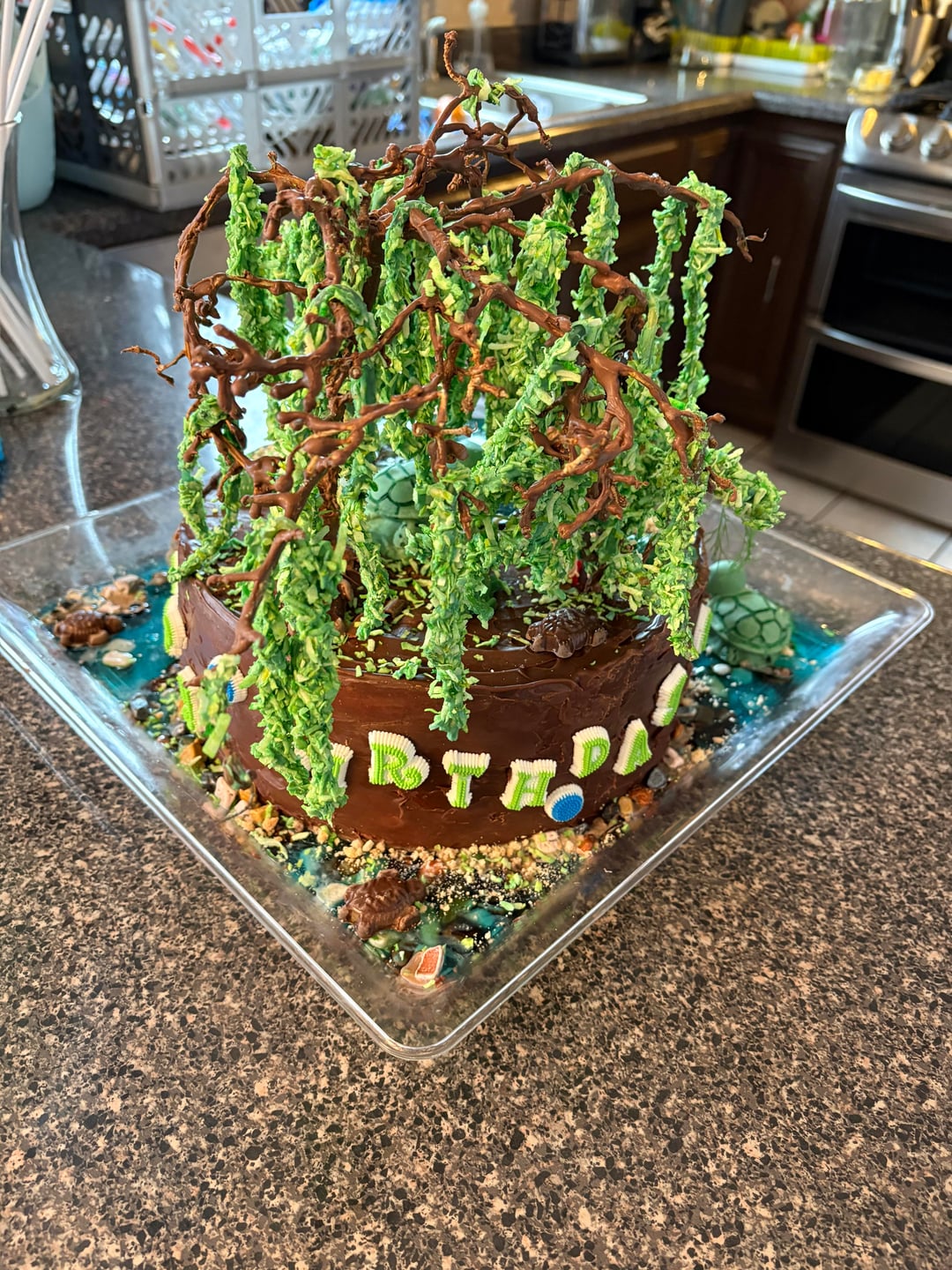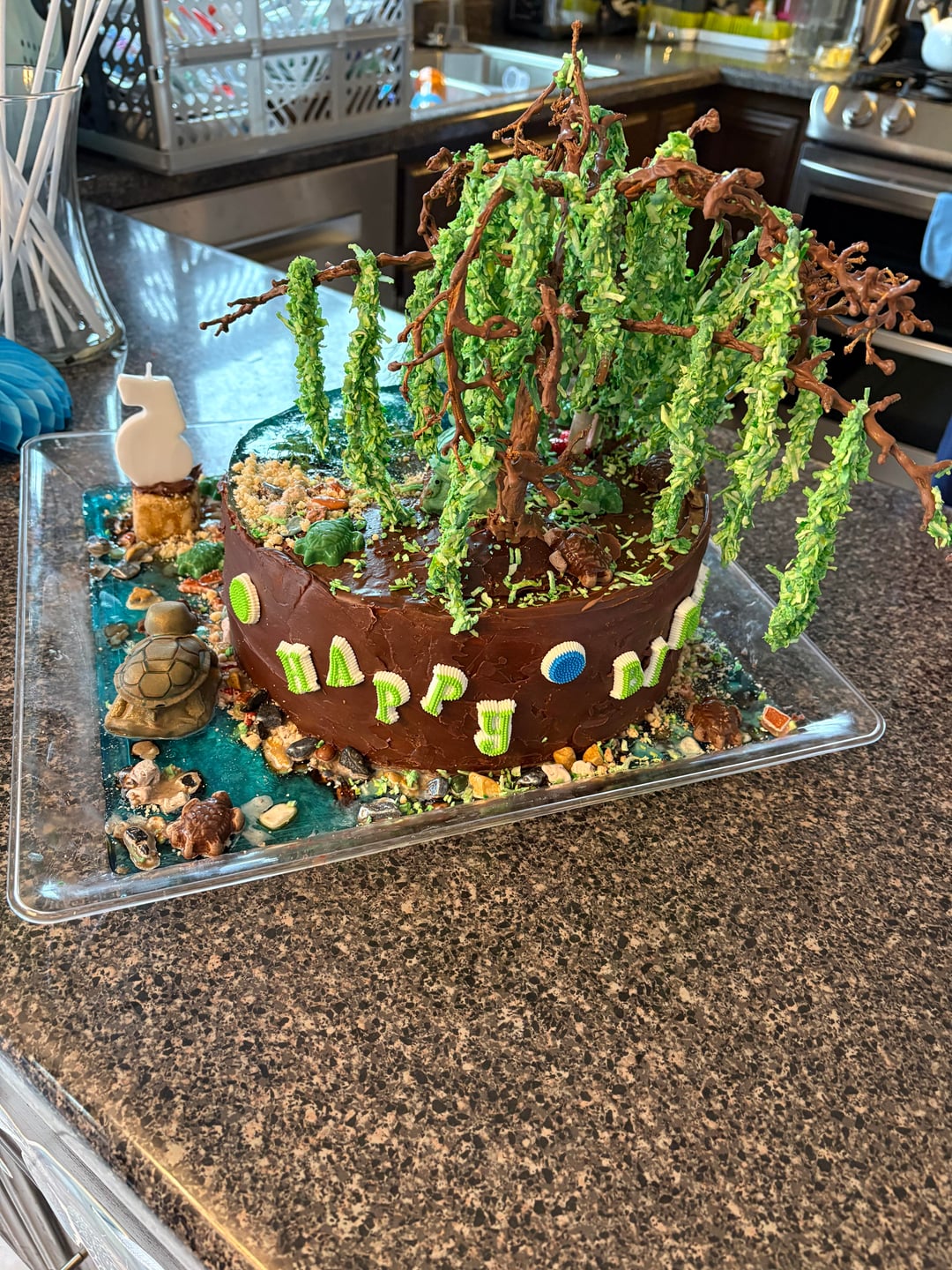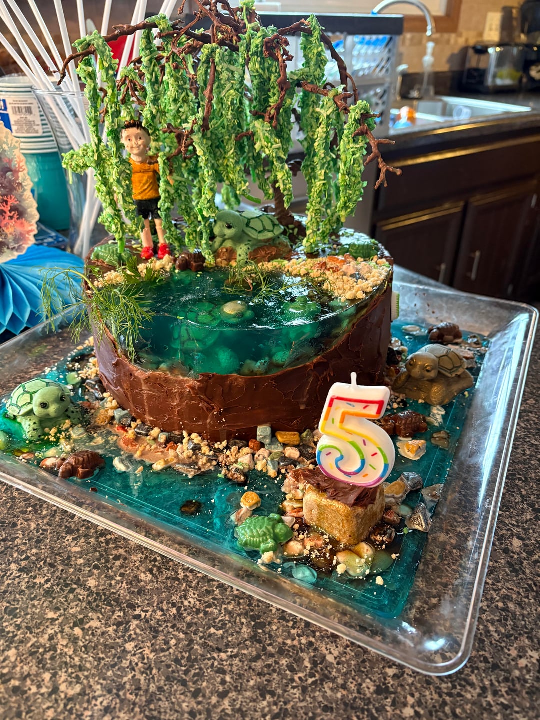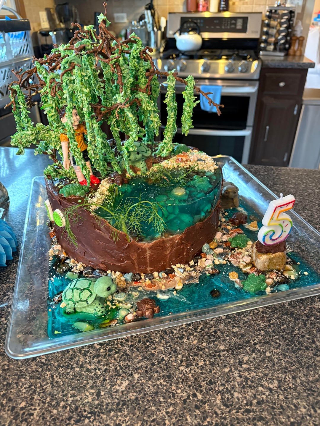 I love this cake soooo much! I love all those 🐢! And reading how she did the trees and pond – Wow!!!