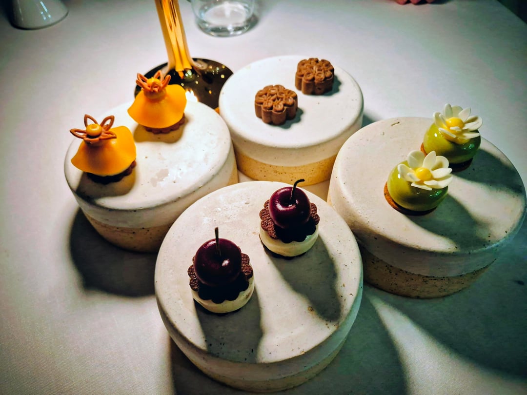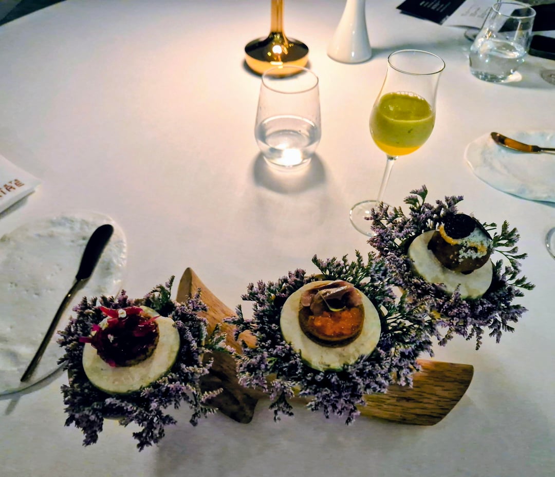 Donaire recently won a star under a head chef that trained as a pâtissier. This is reflected is some fairly unique textures and flavour profiles that mix sweet and savoury throughout the meal. Menu is the last photo. Highlights were the pre-dessert (deconstructed pad Thai with white chocolate!), cherne fish and both sets of petits fours. As with many tasting menus, the meat course was the least interesting. This was the €110 tasting menu. The sommelier suggested a couple of wines by the glasses that were a great match and good value. The area around Adeje is a real fine dining destination with several starred restaurants. I've also tried San Hô which I equally recommend.