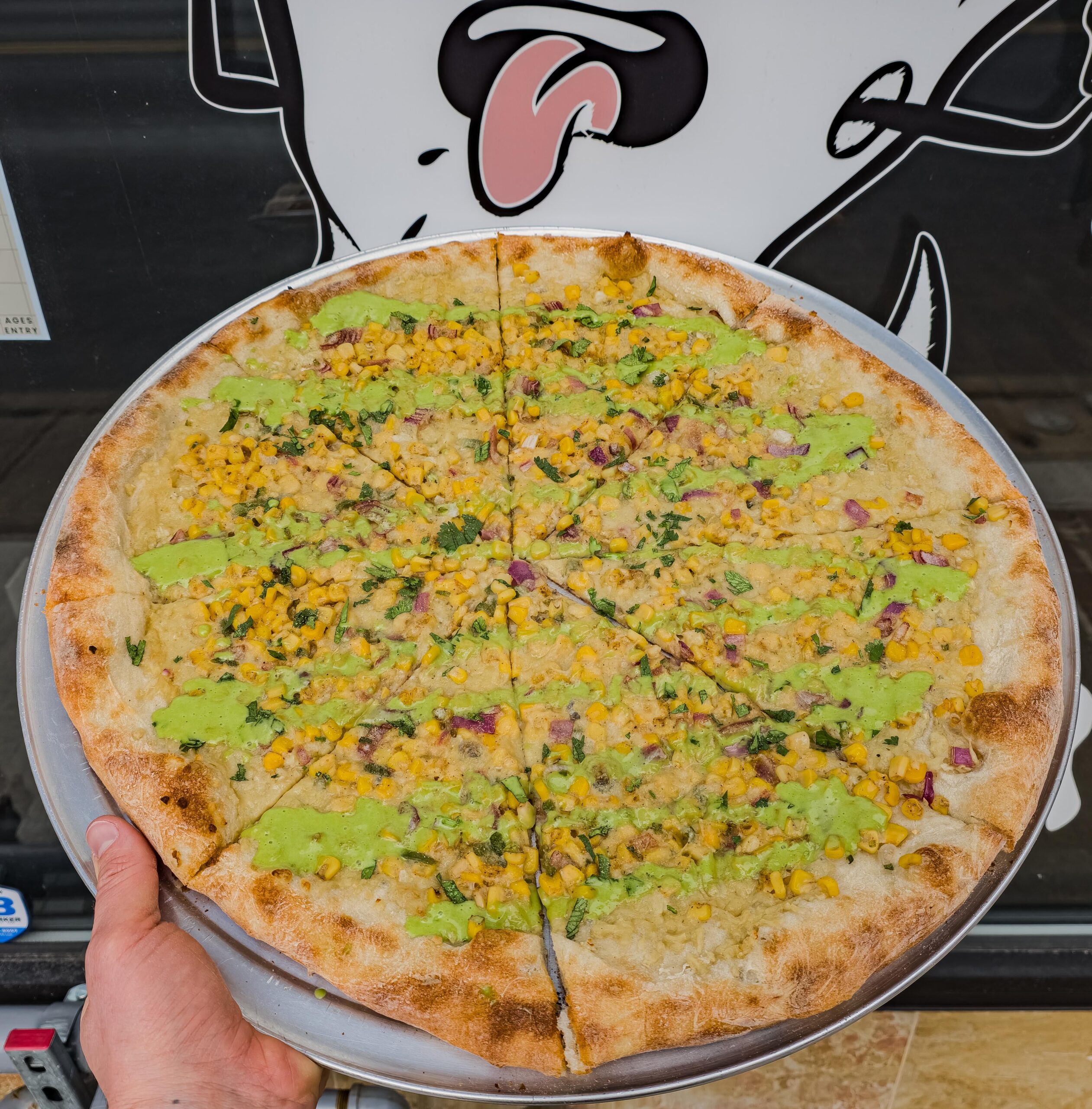 This is our controversial weekly special at Paranormal Pizza, the Elote pizza. It features oil and garlic, house made cashew mozz, seasoned corn, red onion, diced jalapeno, cilantro, parm and a jalapeno lime mayo drizzle. Would you try it?
