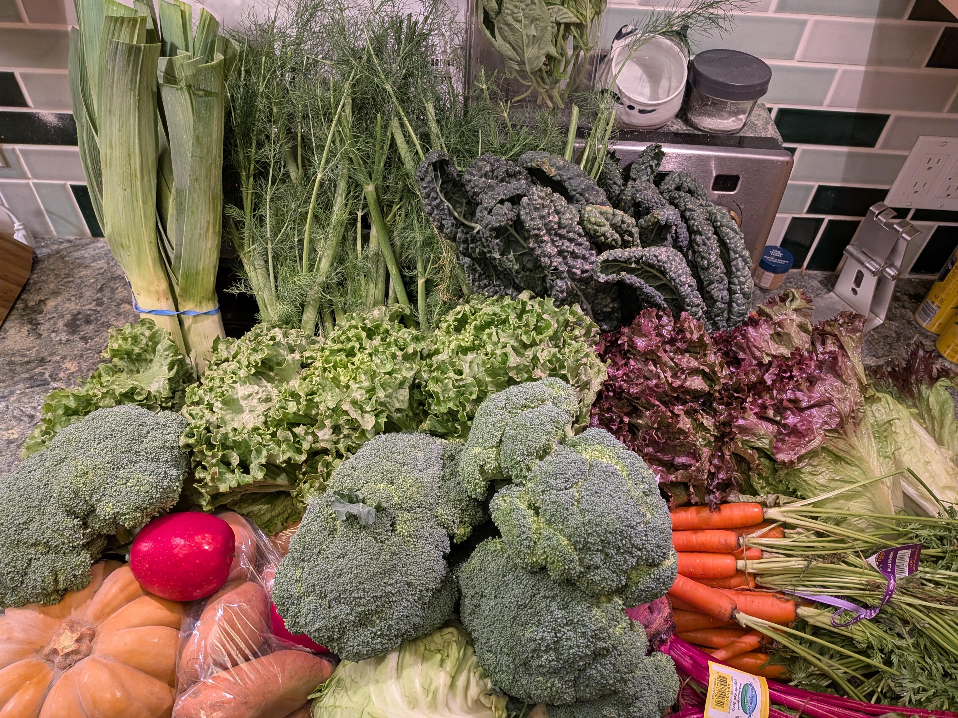If I got that much produce for a week, a good 70% of it would rot before I could use it. I only have to feed two adults, though.