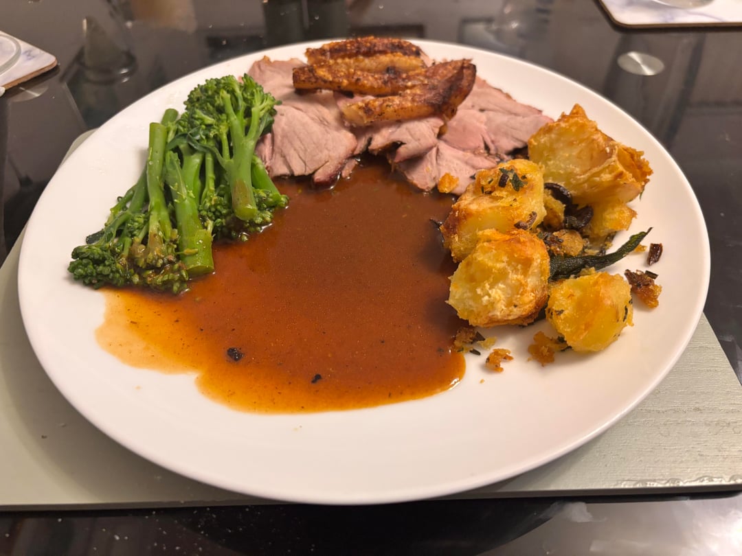 Roast pork n crackling, roast potatoes, broccoli and meat juices gravy.by Neddy29 1 Comment TheeBustiestBella 1 month ago Yummy! I’ll take mine via Fedex please!
