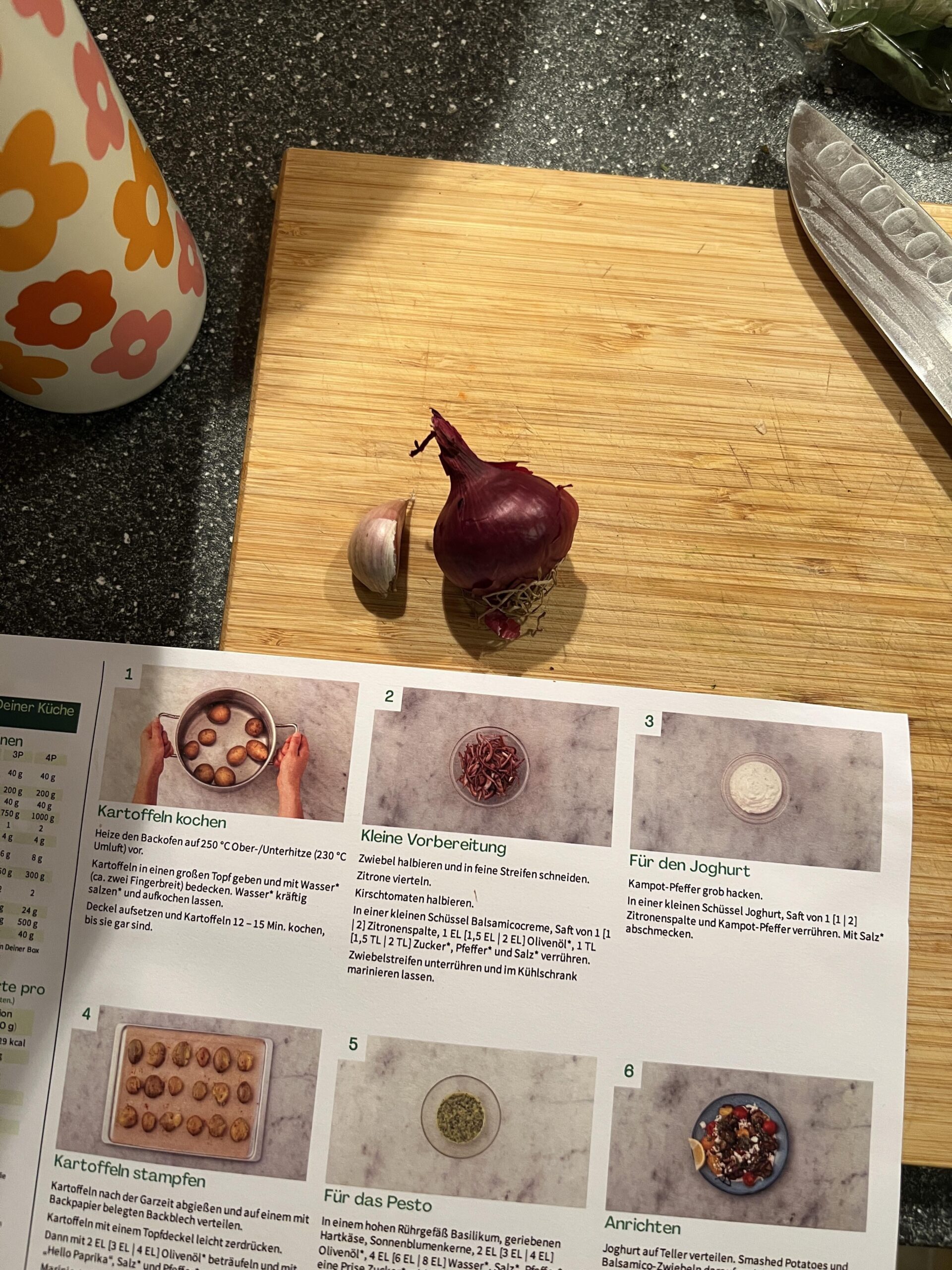 Die Zwiebel is wohl für den Salat, und das Bild is in Originalgröße, Knoblauchzehe for Scale💀🔪😬 by Shrimpsaft Dining and Cooking