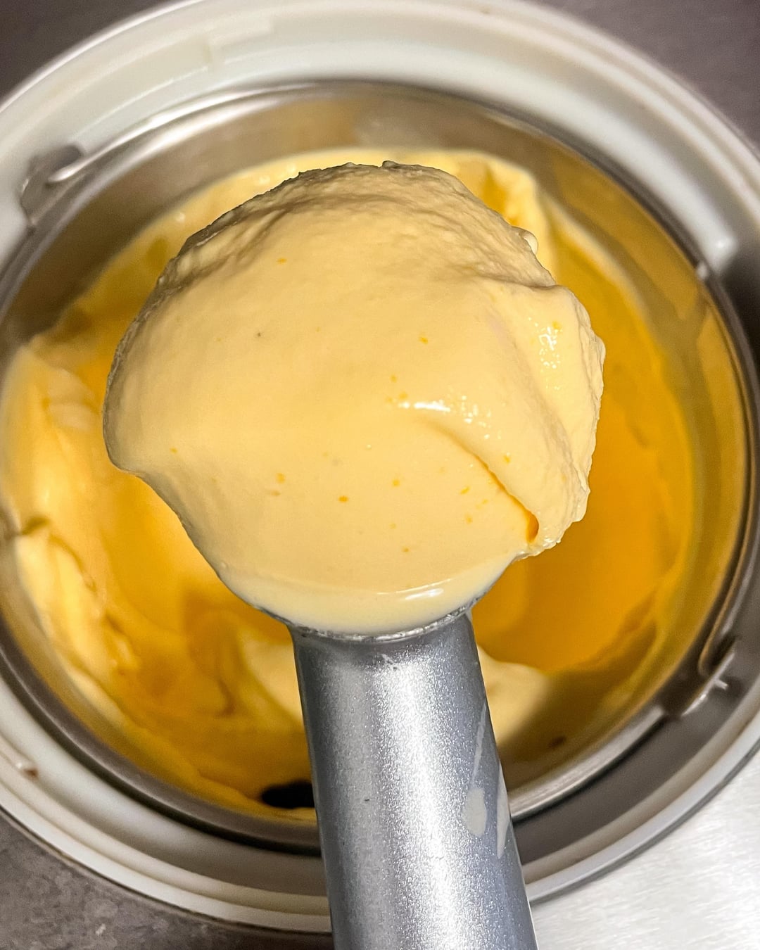 A few bites usually the color in dim sum is more gold leaning they use food colouring. Adding Annatto or even carrot powder would boost the color. This gelato is meant to be slightly grainy in texture it’s true to the original Liu Sha Baozi it’s based on. You could potentially swap out the 4 egg yolks for 3 duck egg yolks for a more richer creamier consistency. To add slight more umph to the savoury note you could add a 1/4 tsp msg or 1/2 tsp of white miso to the custard base.