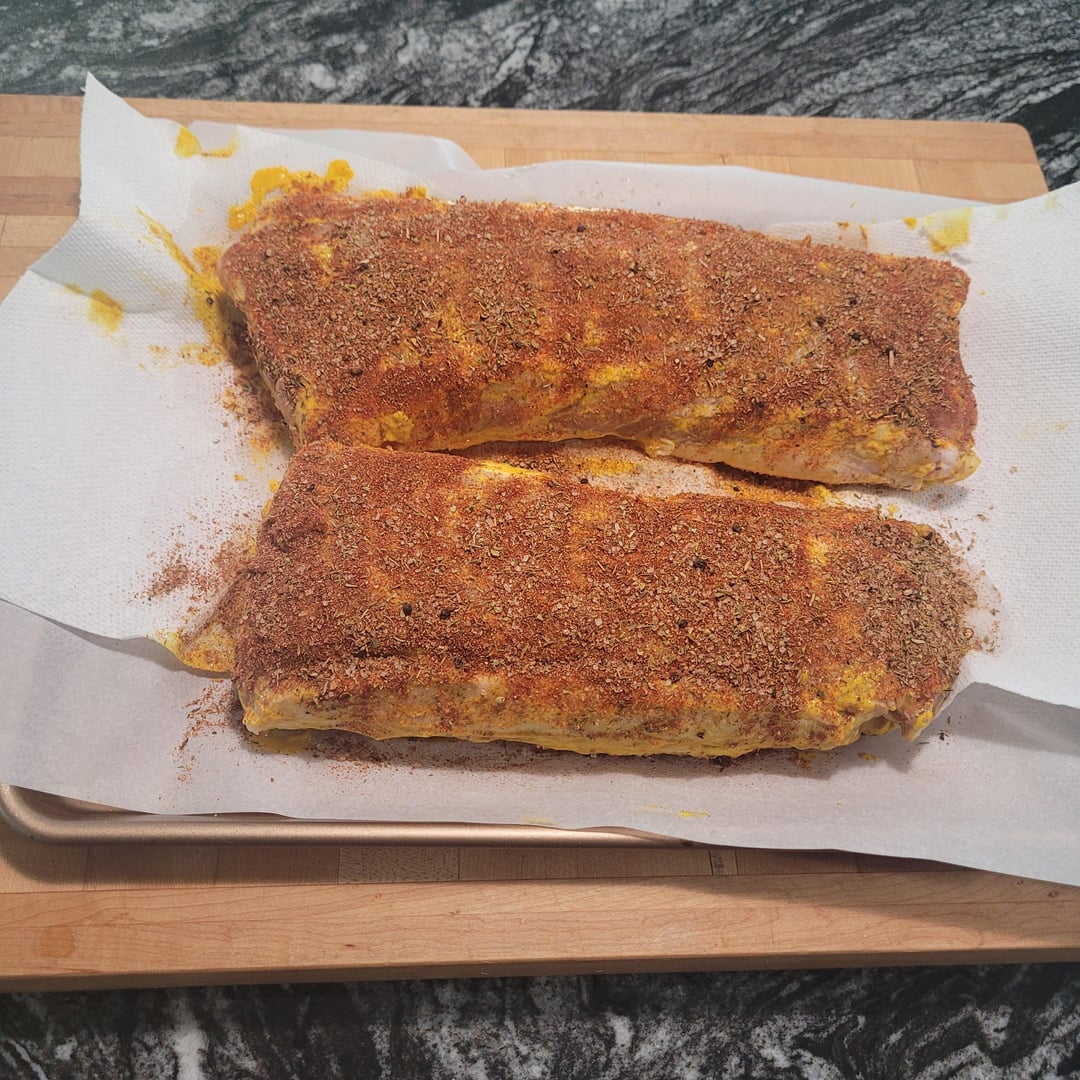 Mustard binder. Pork rub seasoning recipe from chilipeppermadness.com (Mike!). 5 hours at 185, last 30 minutes at 350, cooked to Internal of 145-150. Rested about 45 minutes.