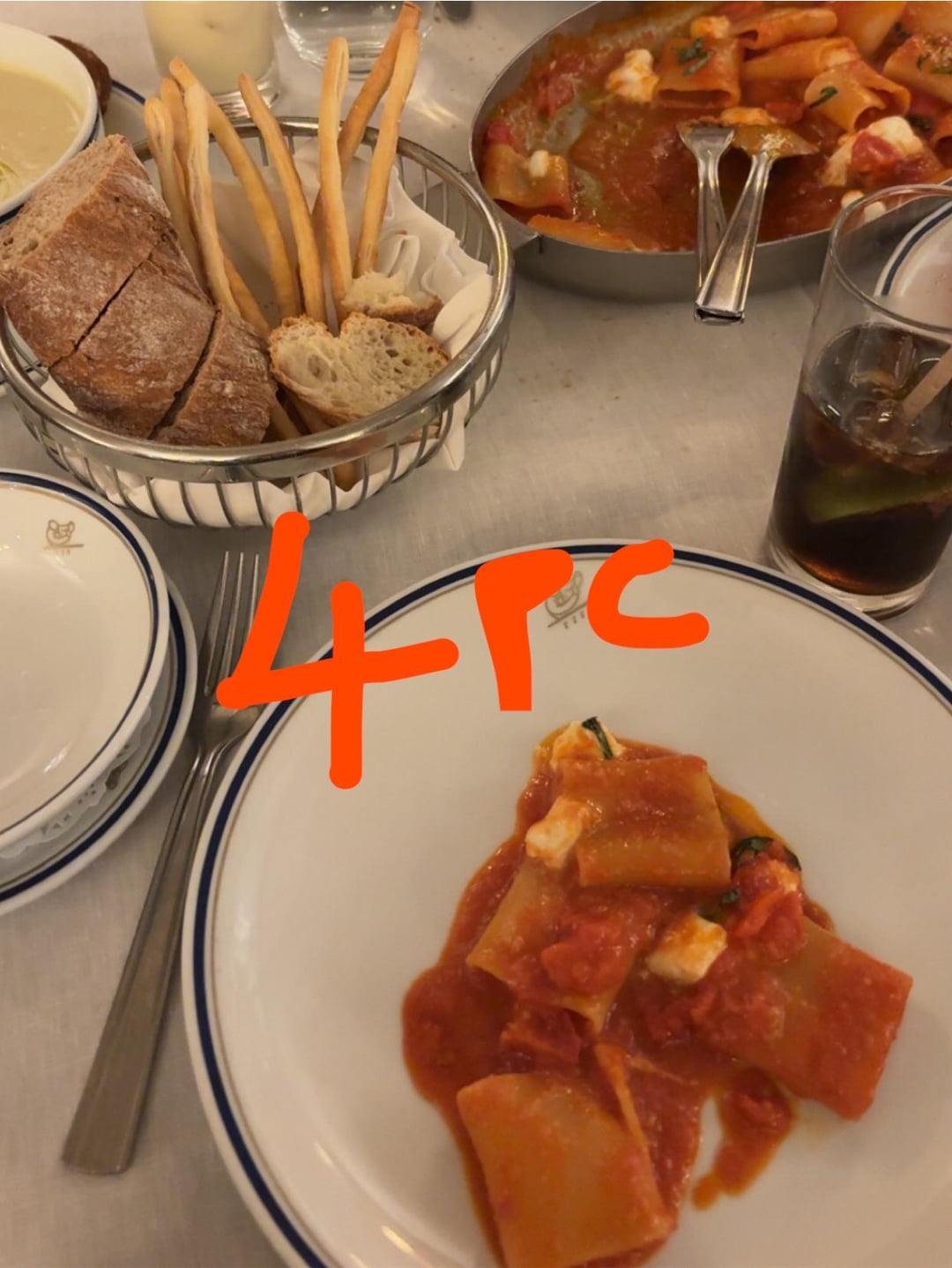 + 3 more pieces of pasta and those r bits of mozarella in the sauce and 2 of those skinny bread sticks. All of it was so good and worth it