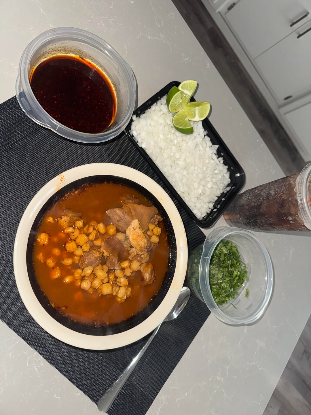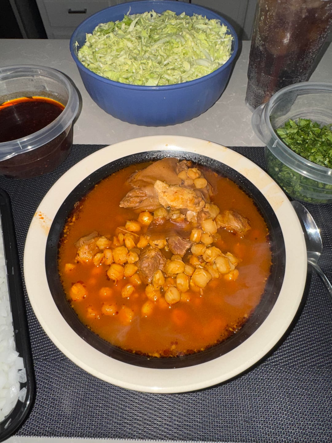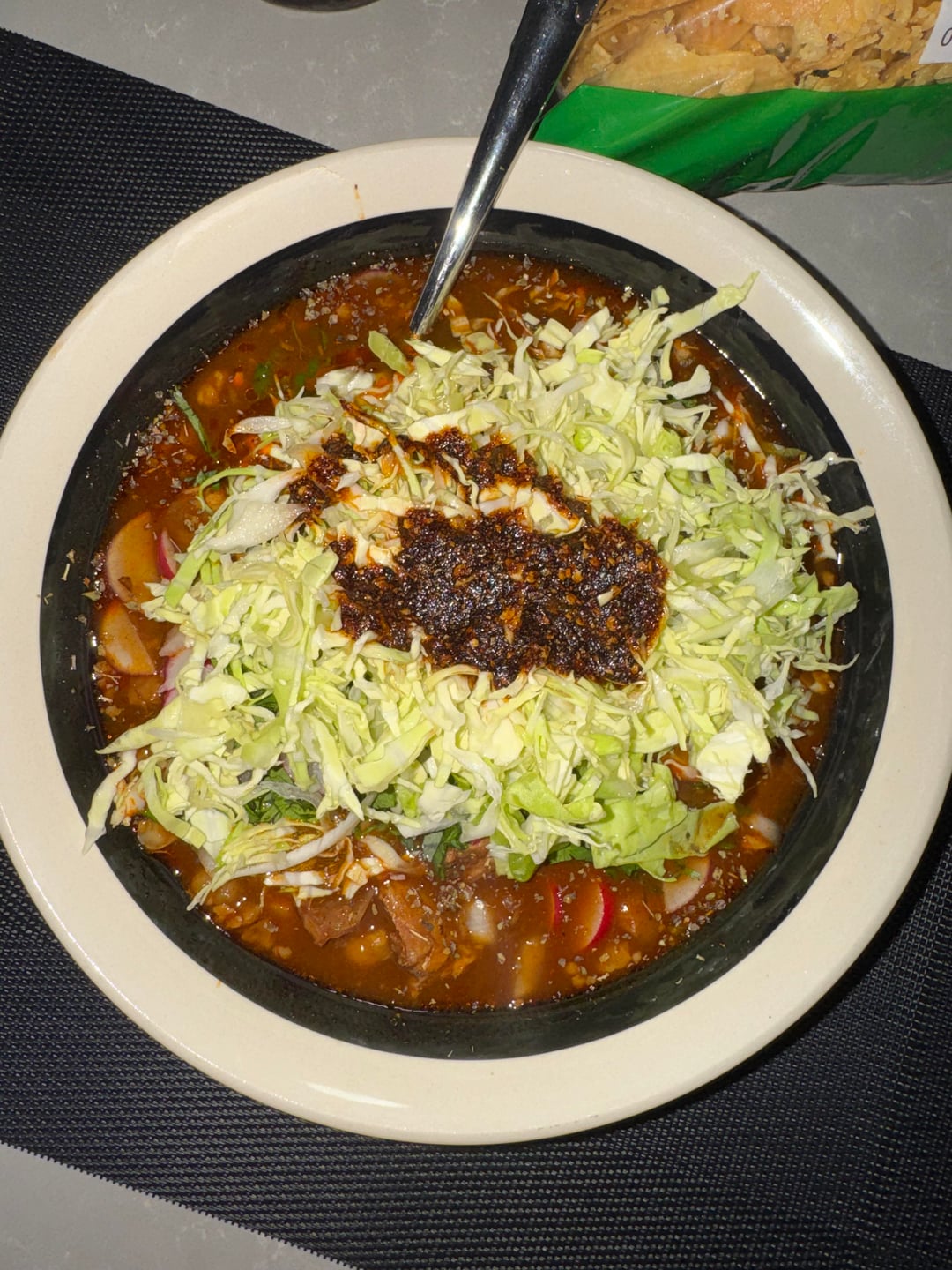 Was craving some pozole rojo for a while now, and this weather was just perfect for it 🤤 swipe left to add toppings. ❤️