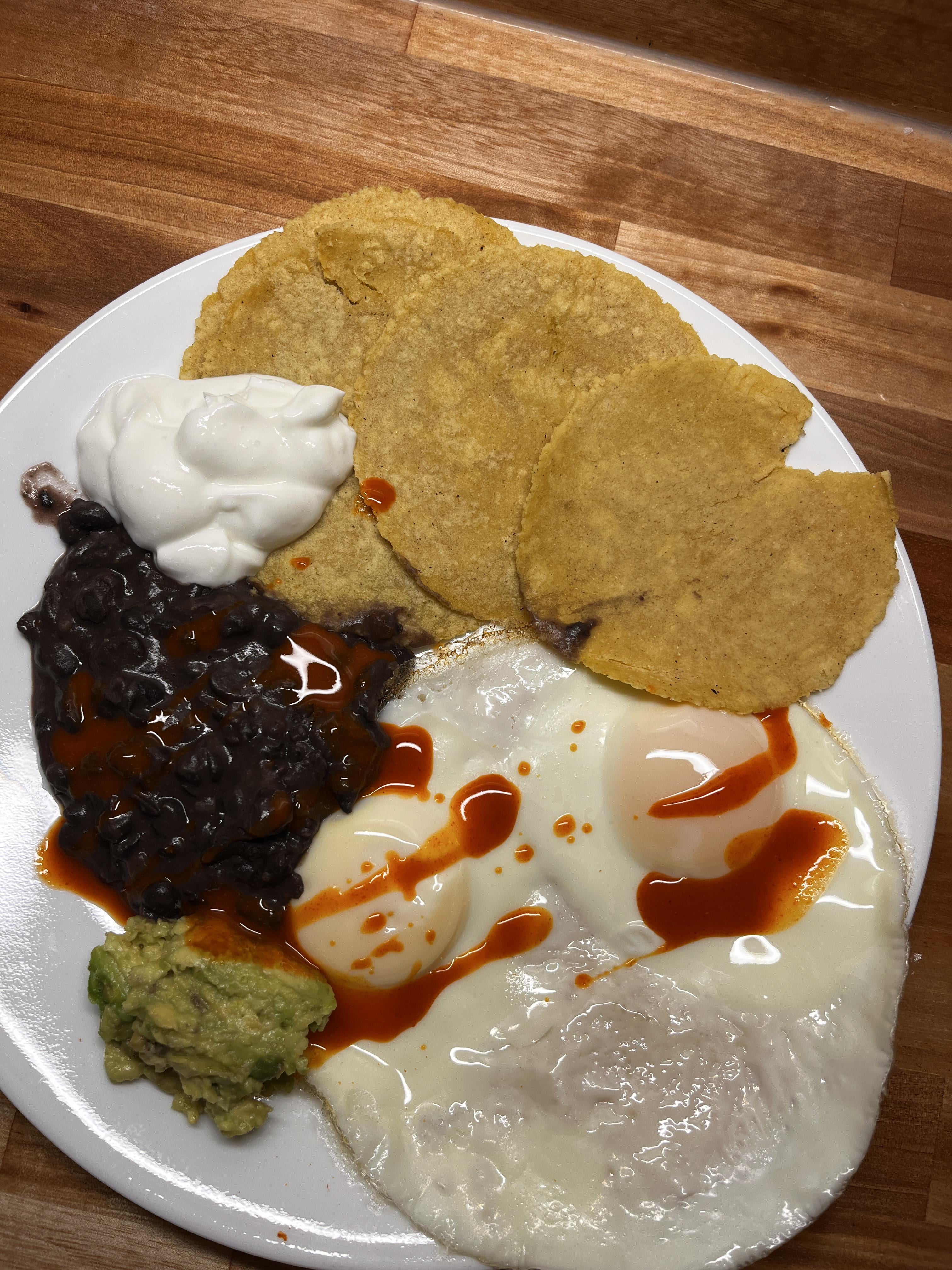 Homemade corn tortillas, homemade vegetarian refried black beans