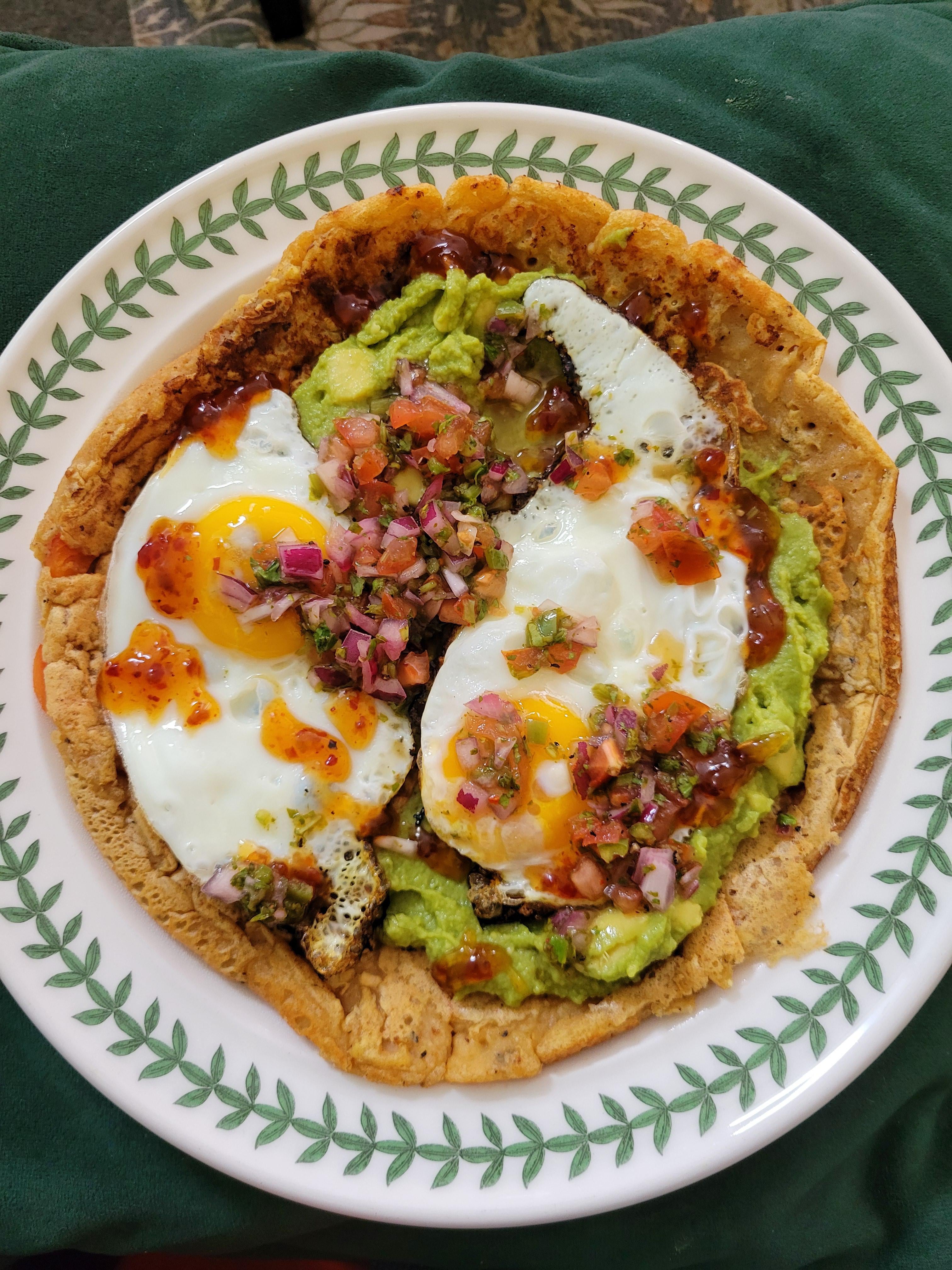 chickpea flour pancake, avocado, fried eggs, hot honey and pico de gallomy goal was to only use things we already had in the house, and it turned out delicious! definitely making that againby pineapplegrunt Dining and Cooking