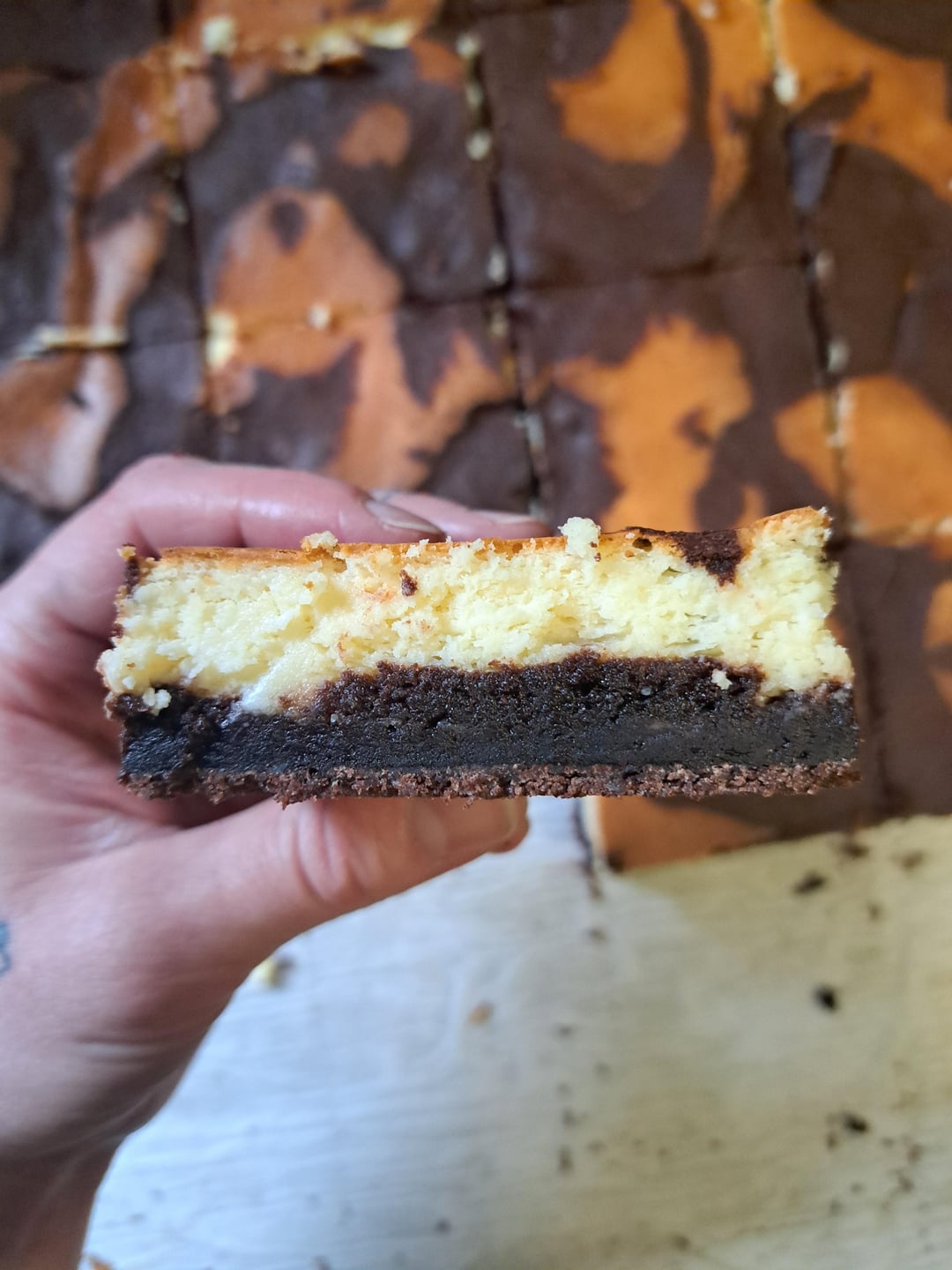 I make a big batch of these 2-3 times a week, I'm no expert I just love baking and work at a rustic cafe where my rustic baking skills excel 😸 I've shared these before and same as last it's not my recipe to share, but I'll happily answer questions about the process 💖✨️ If anyone has suggestions on new styles of cheesecake brownie I'm all ears 👂